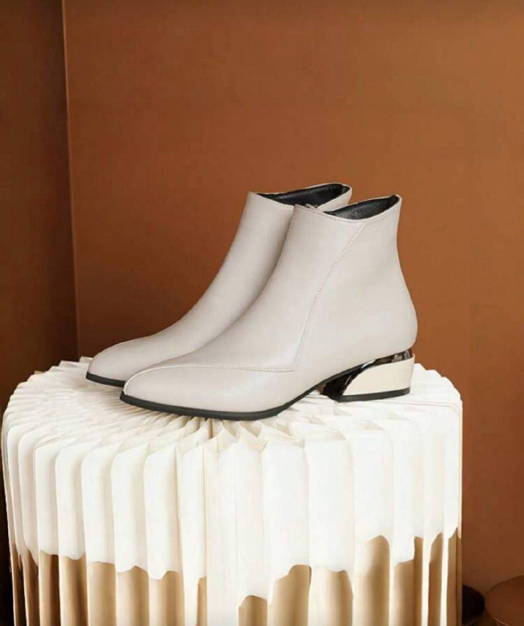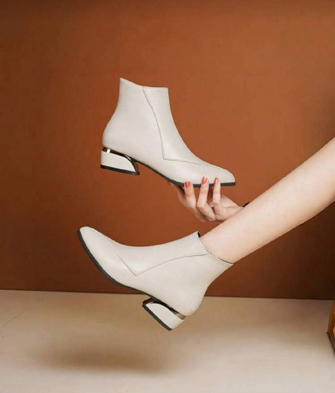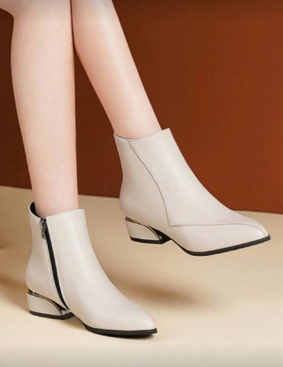 مثالي مع الكارديجان، بوت كاحل نسائية جديدة موسم خريف وشتاء 2024 ذات إصبع قدم مدبب وكعب سميك منخفض، متعددة الاستخدامات وأنيقة من الجلد الناعم ذات نعل ناعم