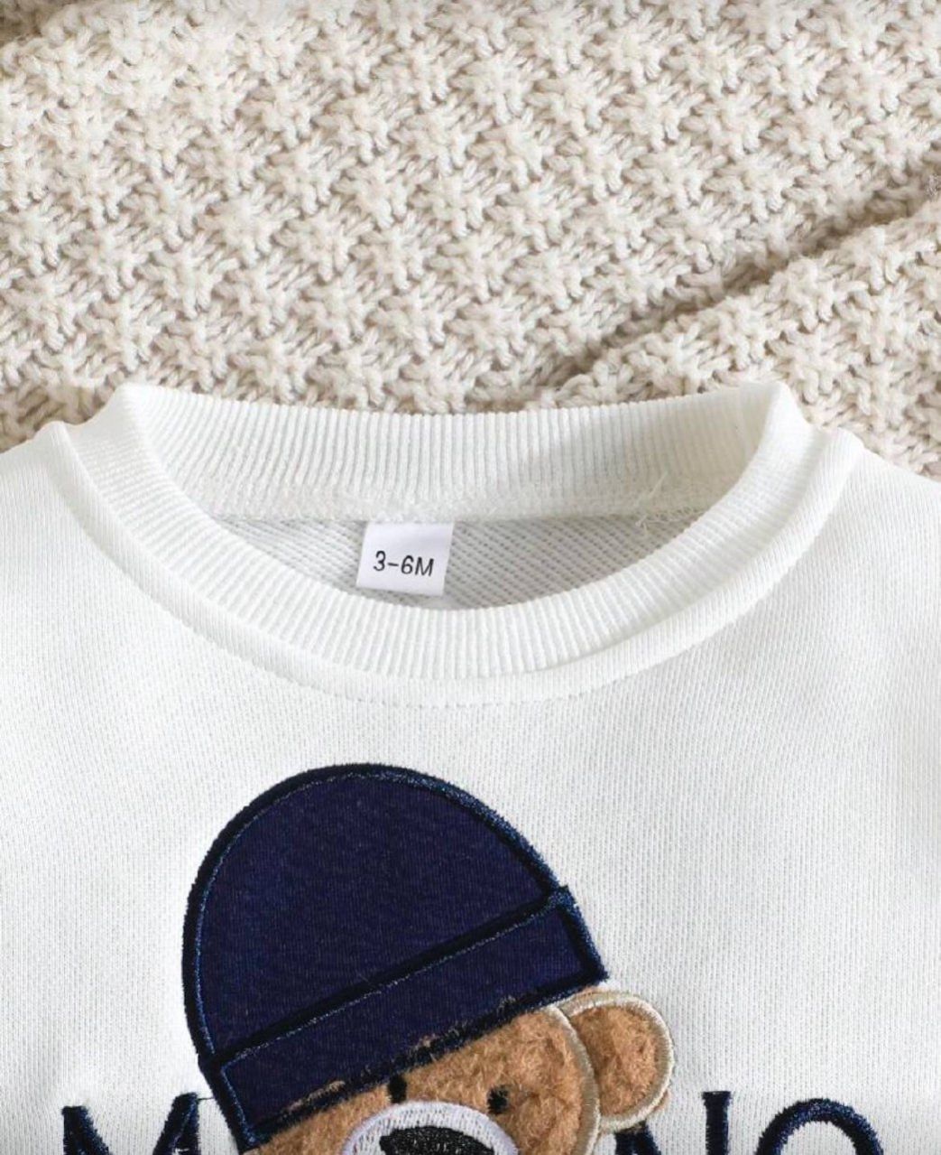 0 Review Of Product مجموعة ملابس علوية كم طويل وبنطال طويل لون أساسي بتصميم الدب الكرتوني للأولاد الرضع، خريف/شتاء، قطعتان