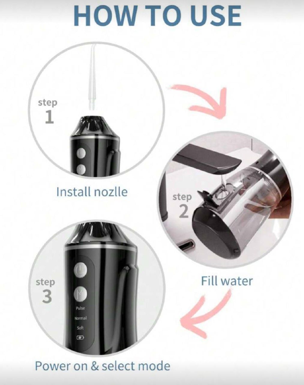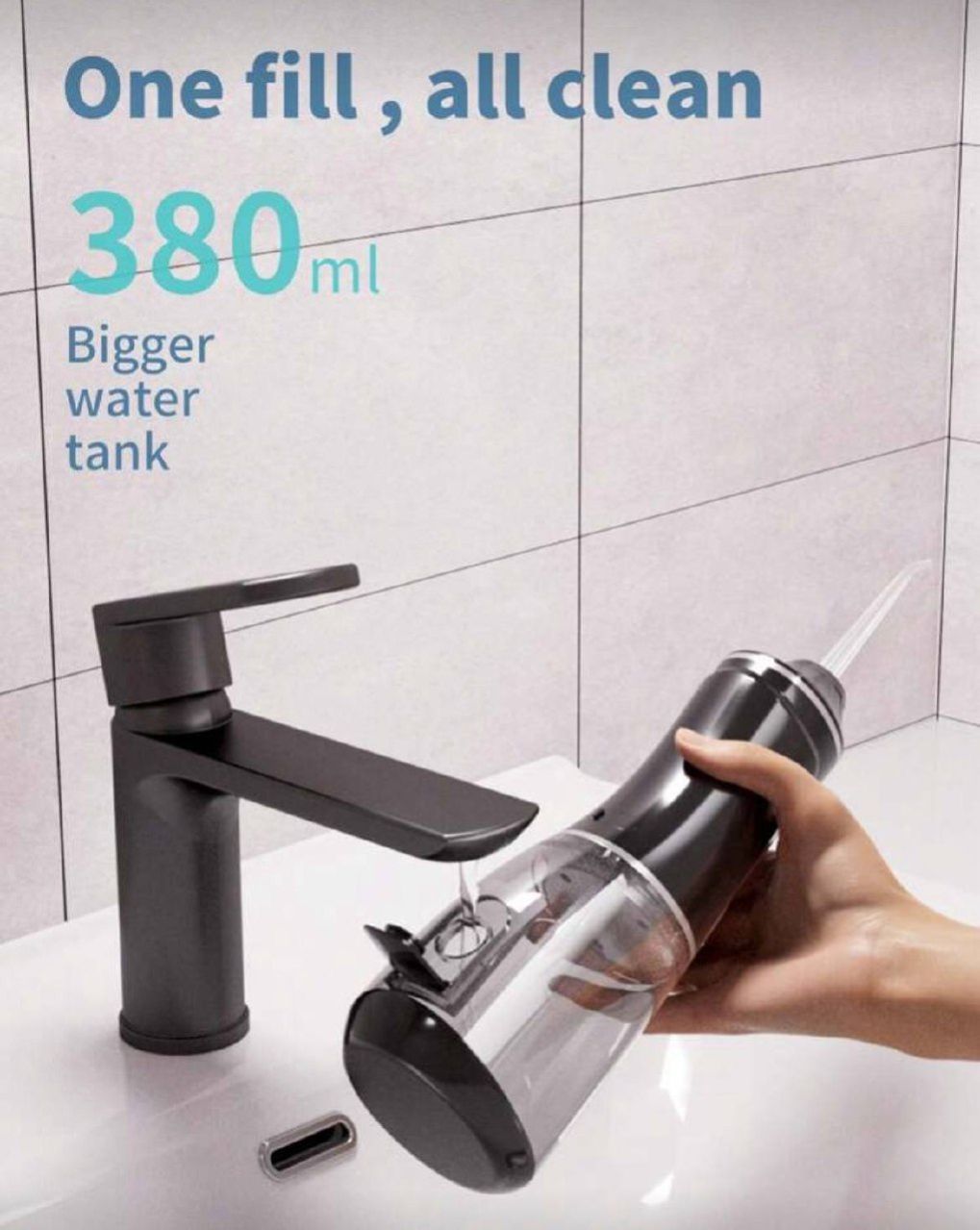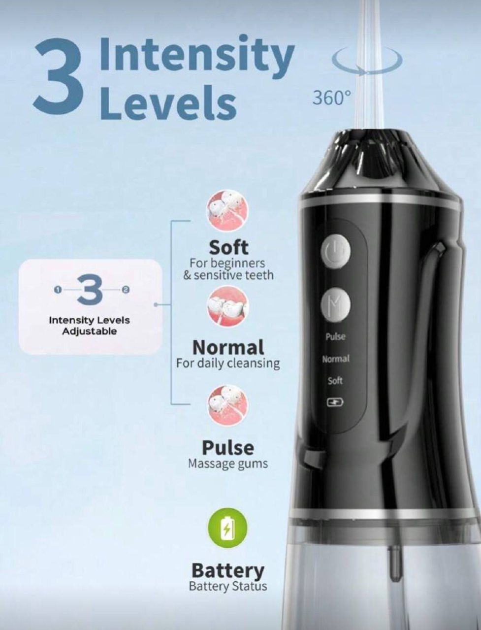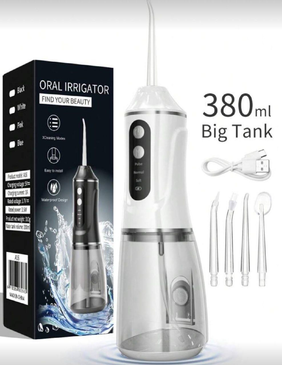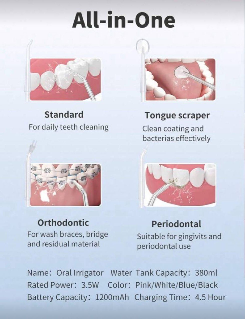منظف أسنان كهربائي يعمل بالماء قابل للشحن، إرواء الفم بالماء ثلاثي الأوضاع، بلا سلك، رأس تنظيف أسنان 4 قطع، خزان مياه كبير 380 مل، مقاوم للماء IPX7، قابل للشحن، بطارية قوية، إلكتريك فلوسر محمول مناسب للعناية بصحة الفم في المنزل، خيارات هدايا متعددة الألوان