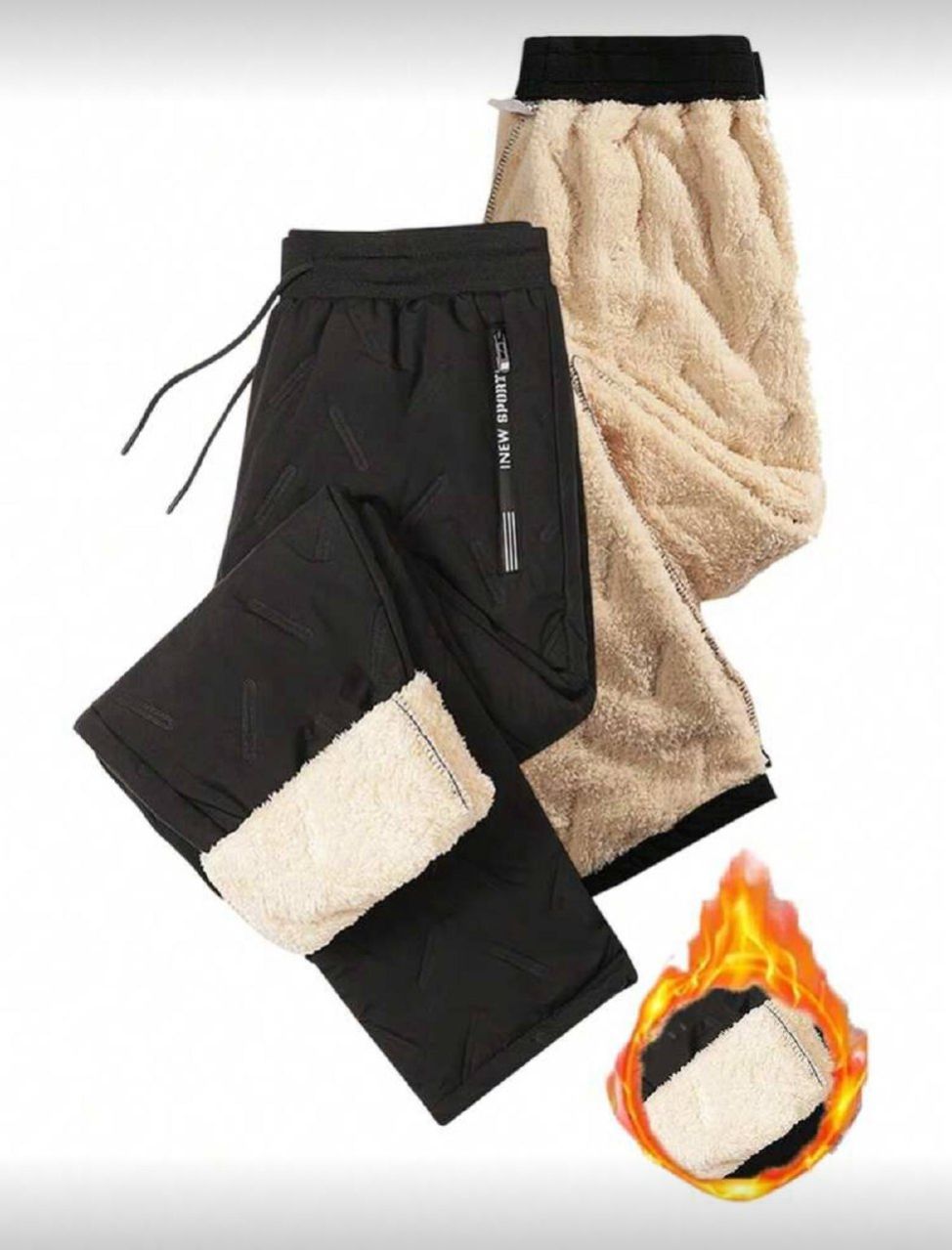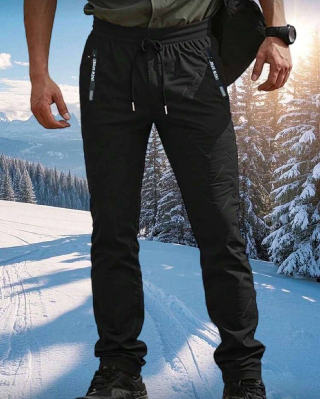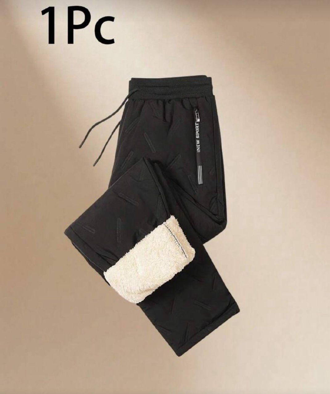 1 قطعة بنطلون جوجر مبطن للرجال، مقاوم للثلج ذو خصر مطاطي + جيوب جانبية مزودة بسحاب، سميك ودافئ، مناسب للتزلج والاستخدام اليومي في فصلي الخريف والشتاء، إصدار محسّن!