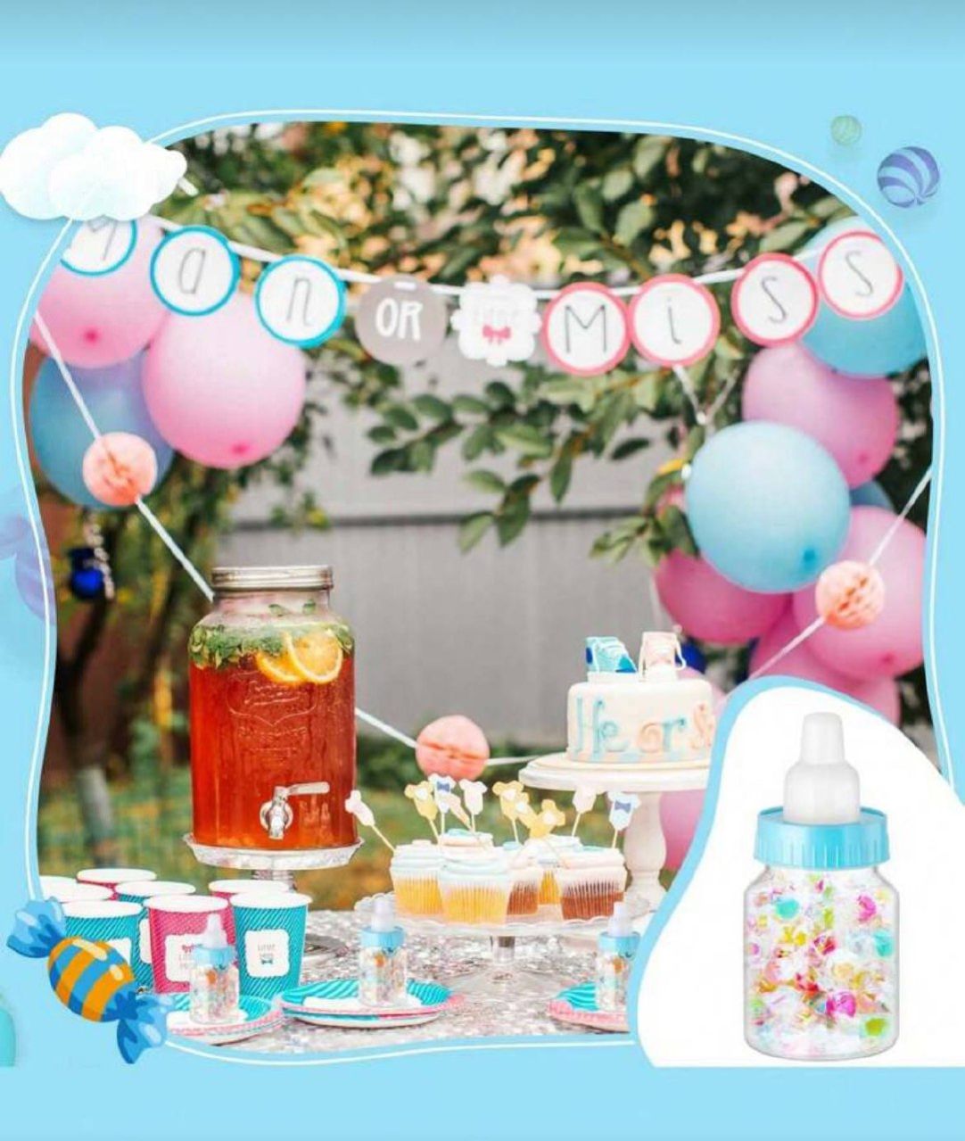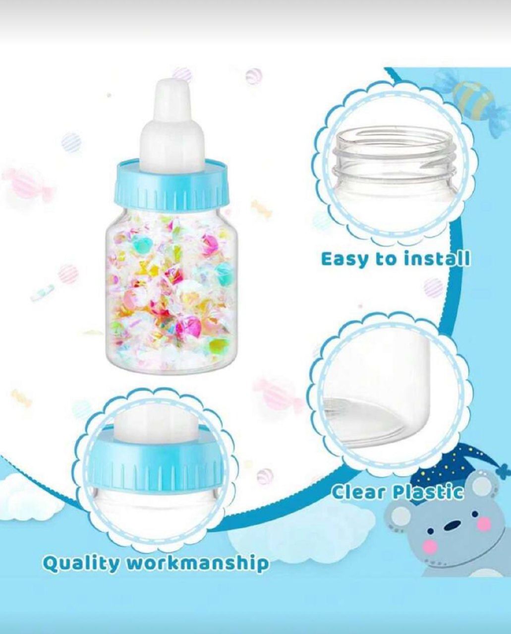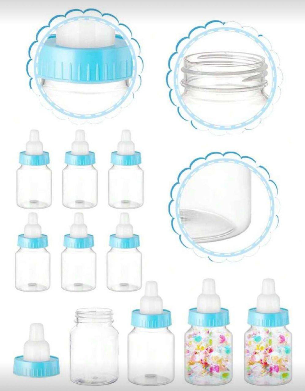 10 قطع- زجاجة بلاستيكية صغيرة بحجم 3.35 بوصة، مناسبة كهدية لحفلة استحمام الطفل، لحفلة الكشف عن جنس الطفل، ديكورات حفلة استحمام الطفل، صناديق حلوى تغذية صغيرة، ديكورات حفلة استحمام الطفل للأولاد (أزرق)