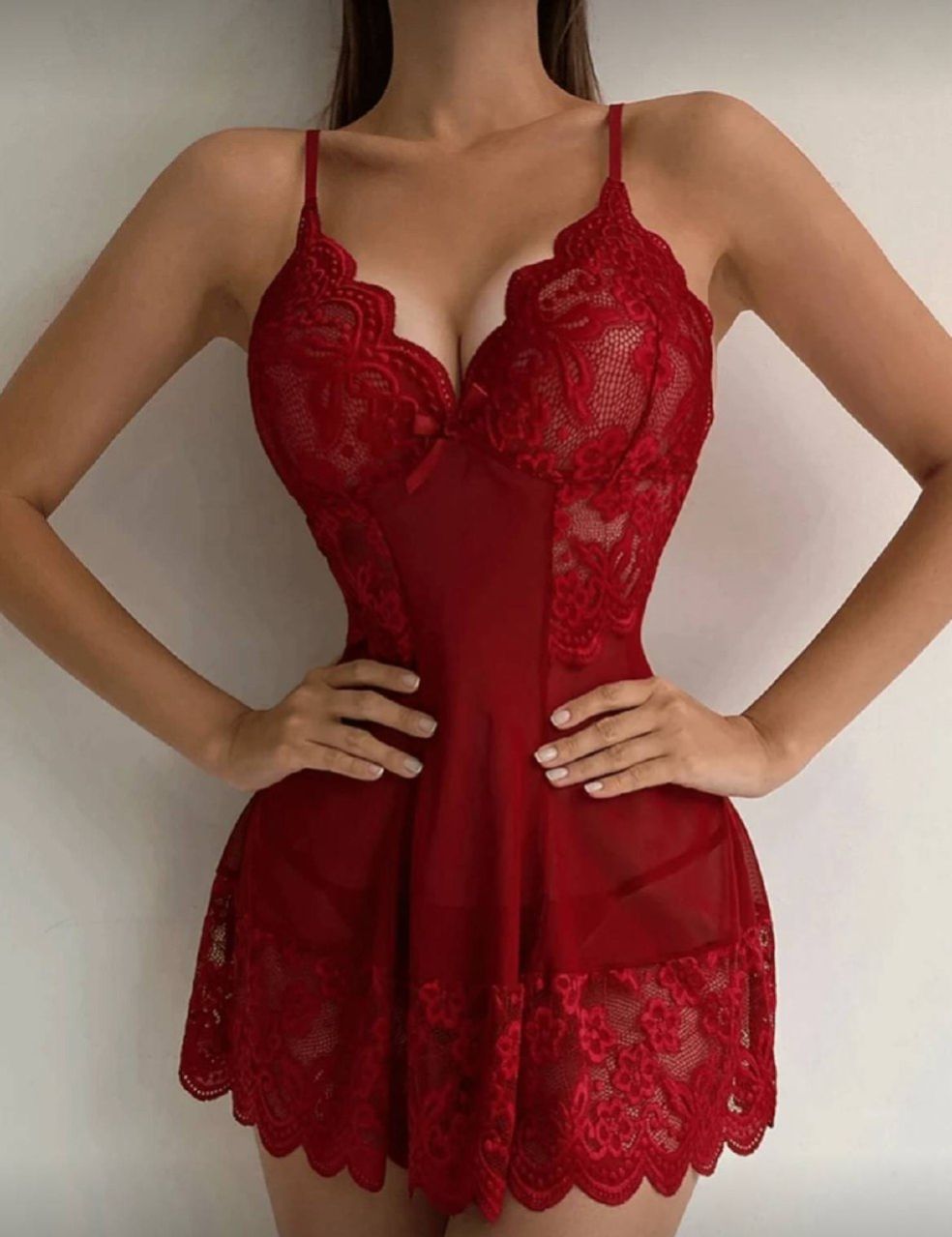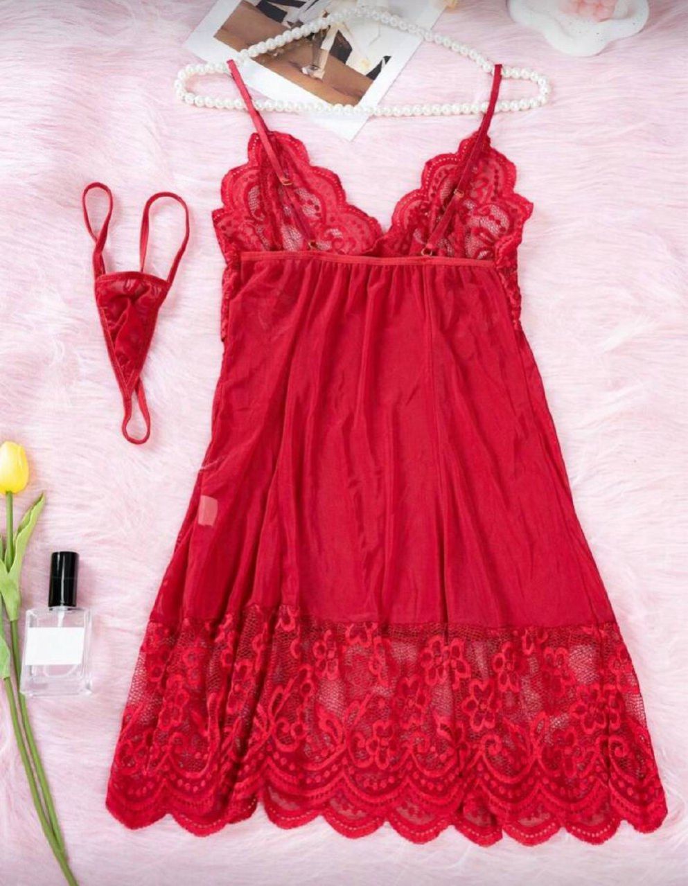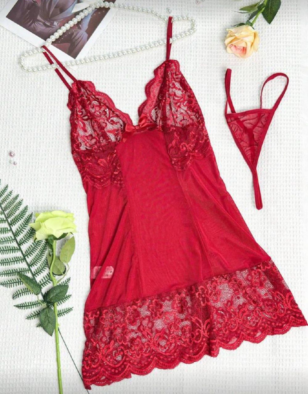 2 قطعة من مجموعة ملابس النوم الحريرية الشفافة ذات الطبعة الدانتيل الأحمر الجذاب للنساء، مناسبة للارتداء في المنزل أو العطلات أو الحفلات الخاصة، ملابس نوم جذابة للسهرات