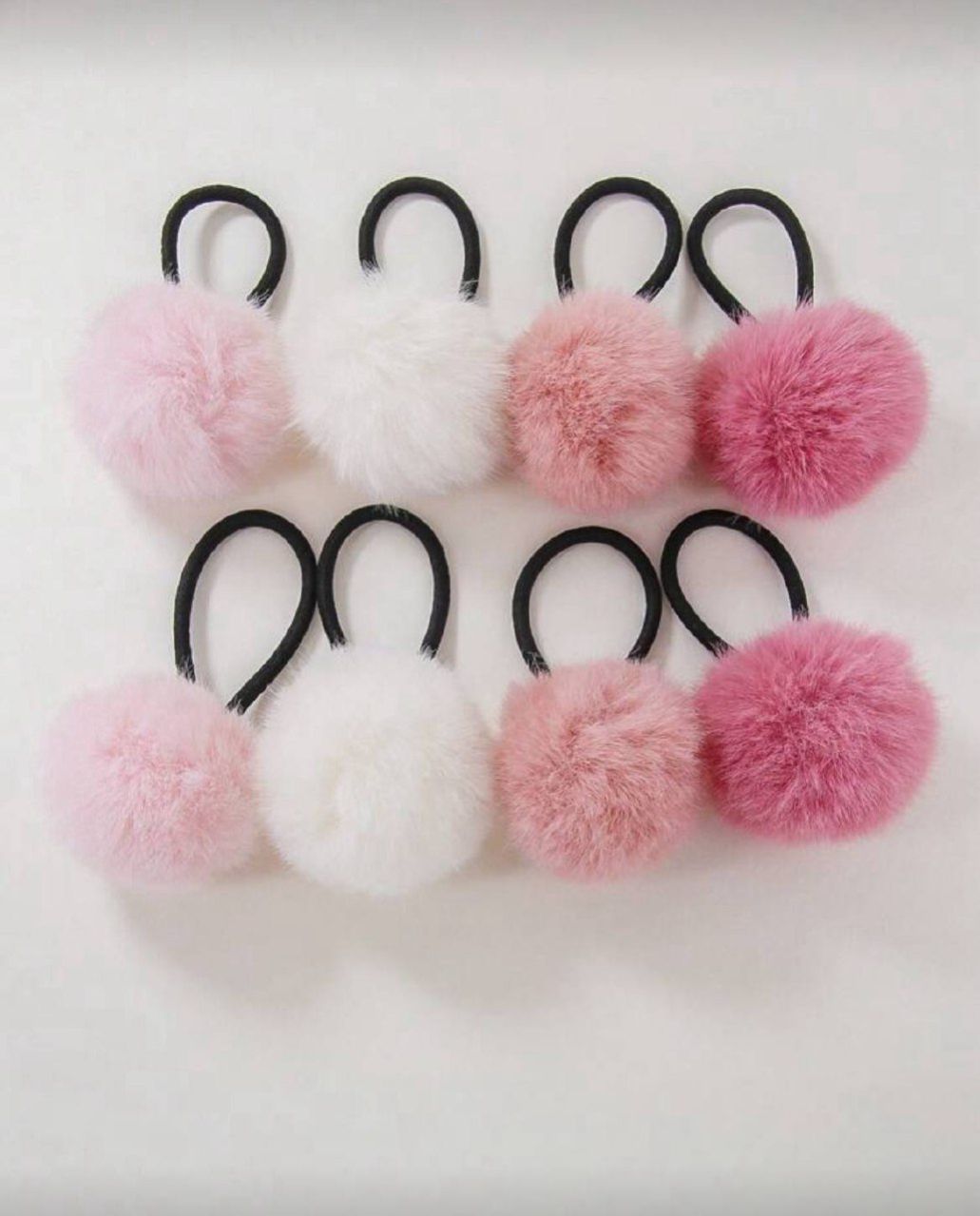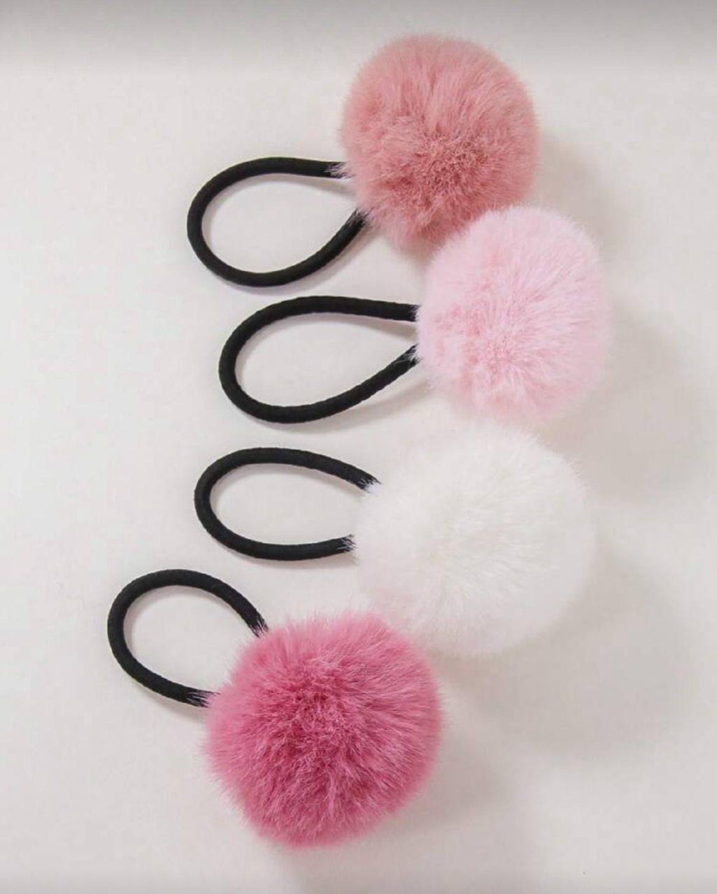 4 قطعة / مجموعة من الكرات الفلفية الكبيرة ذات تدرج اللون للفتيات، ربطات شعر مطاطية ذات مرونة عالية ، احتفظي بذيل الحصان ، اكسسوارات شعر