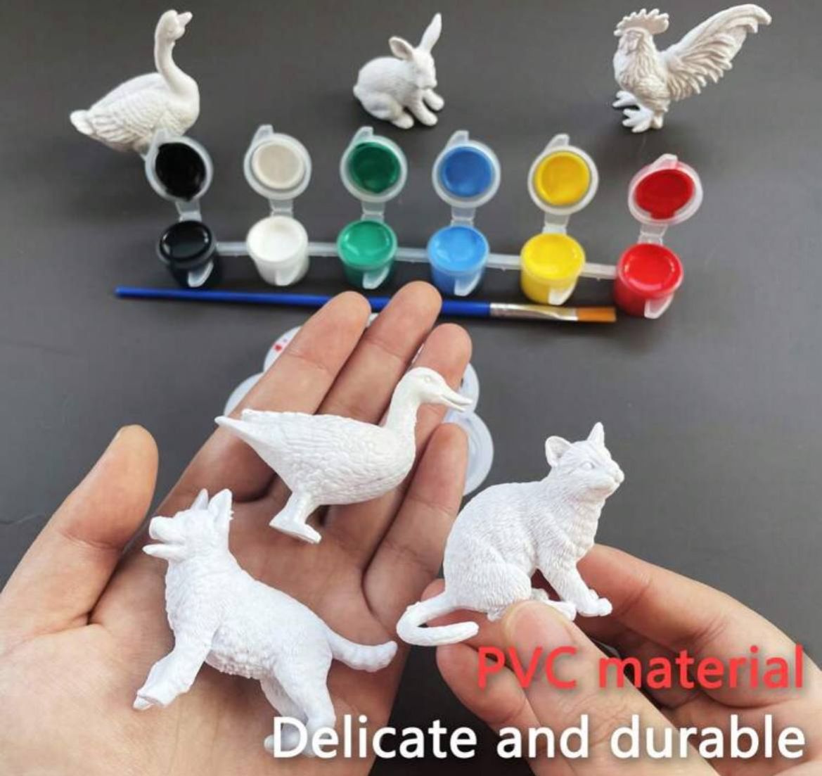 0 Review Of Product 6 قطع مجموعة رسم حيوانات من البي في سي، ألواح بيضاء للرسم الحر، طقم فن حرفي DIY، هدية إبداعية لعيد الميلاد أو المناسبات