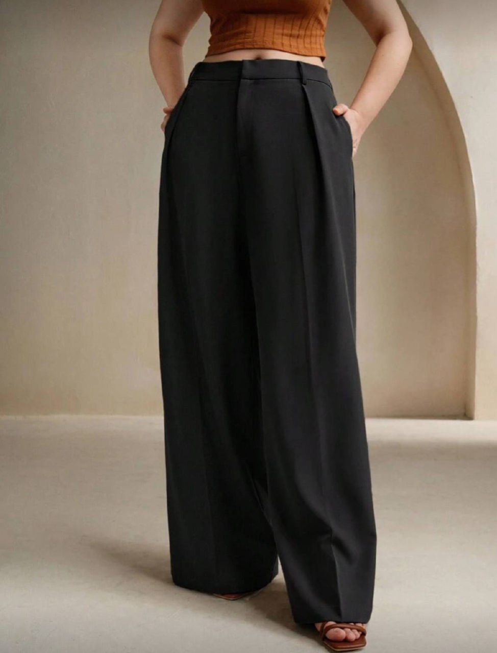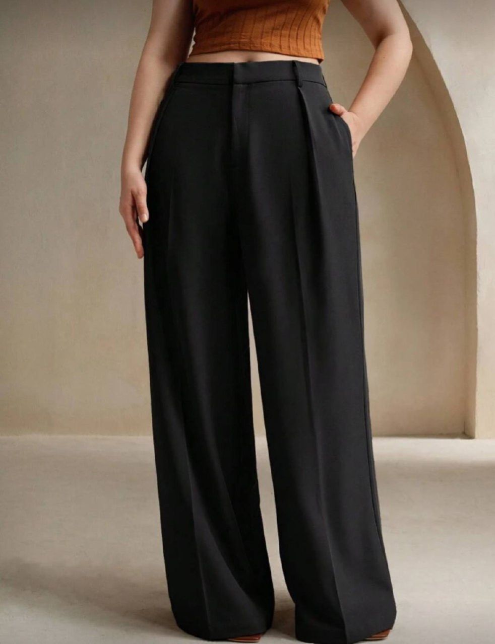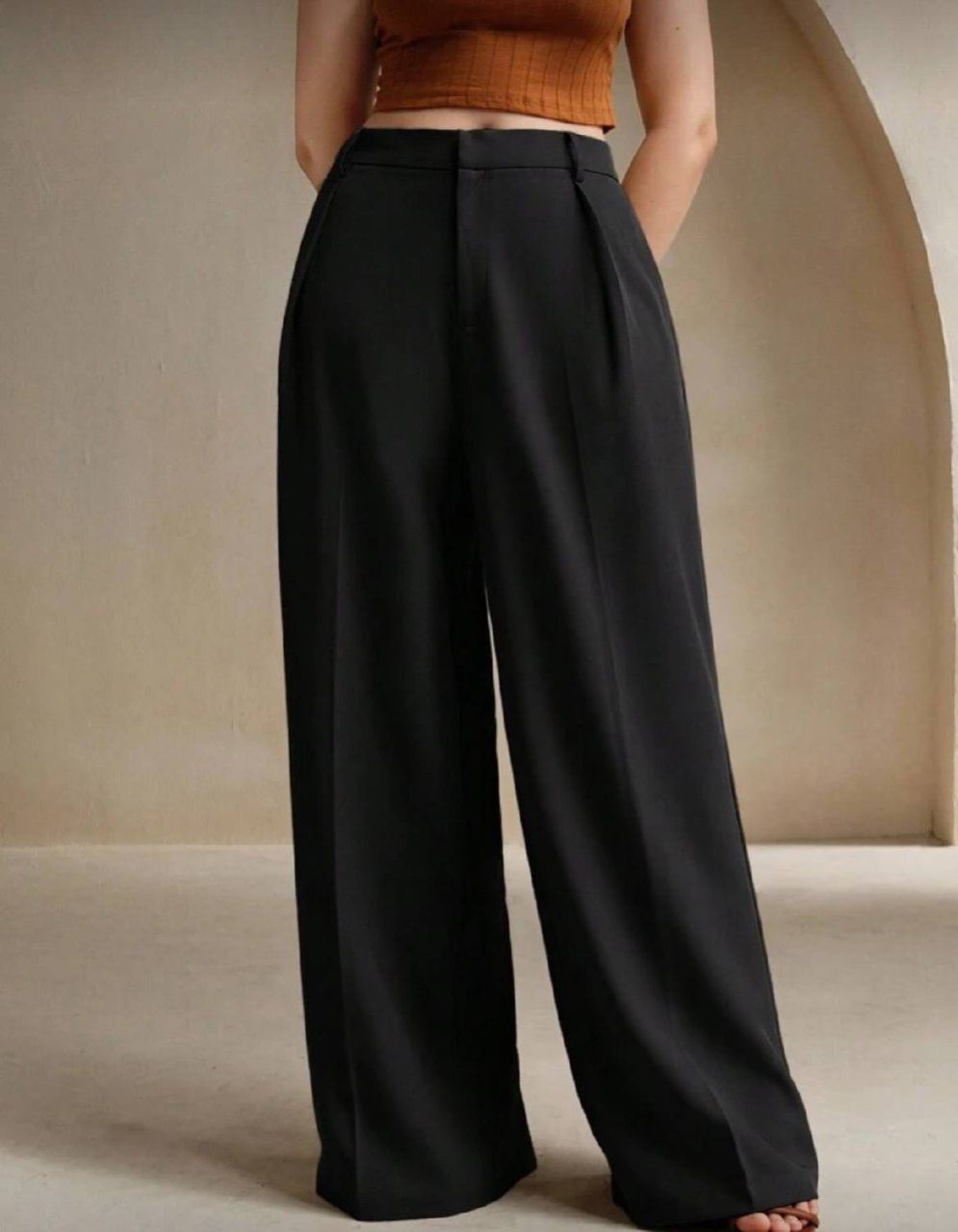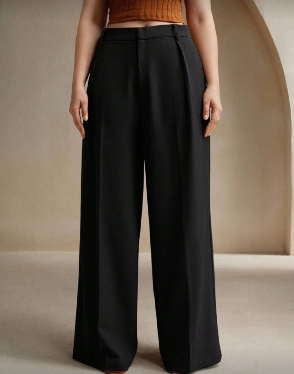 Anewsta بنطلون سيدات أنيق ذو ساق مستقيمة للمكتب والاستخدام اليومي، مقاس كبير، باللون الأسود'