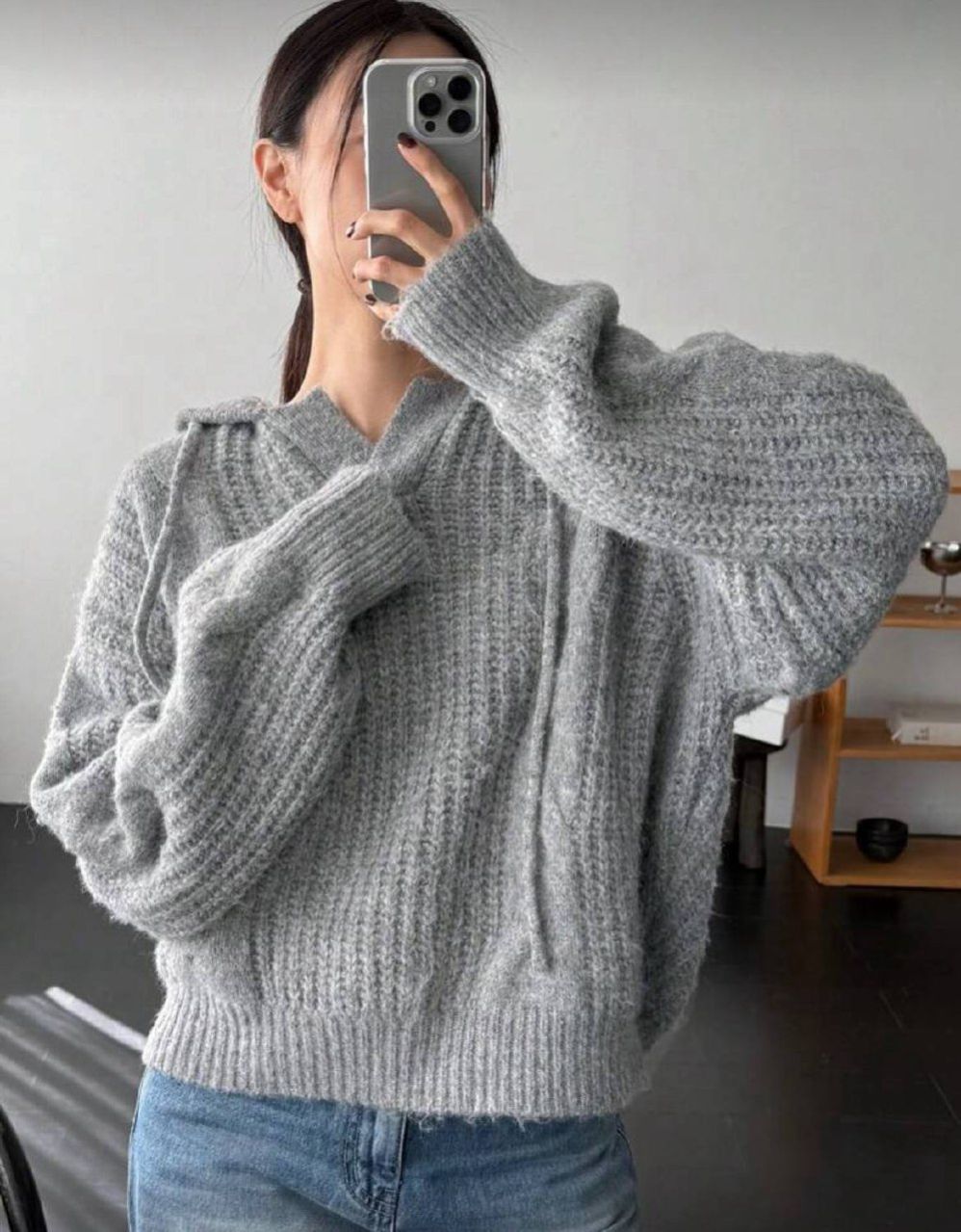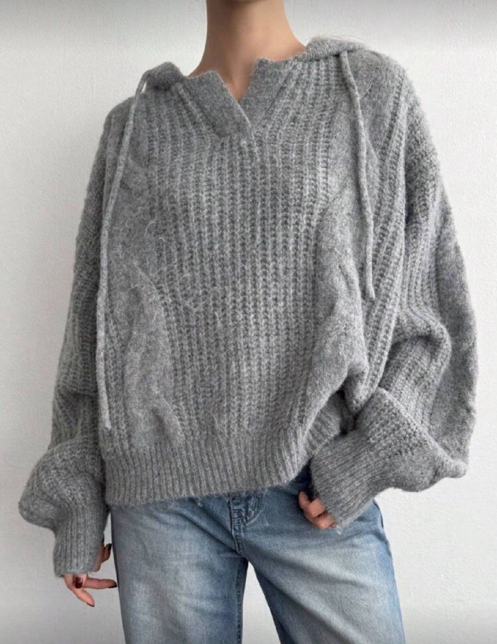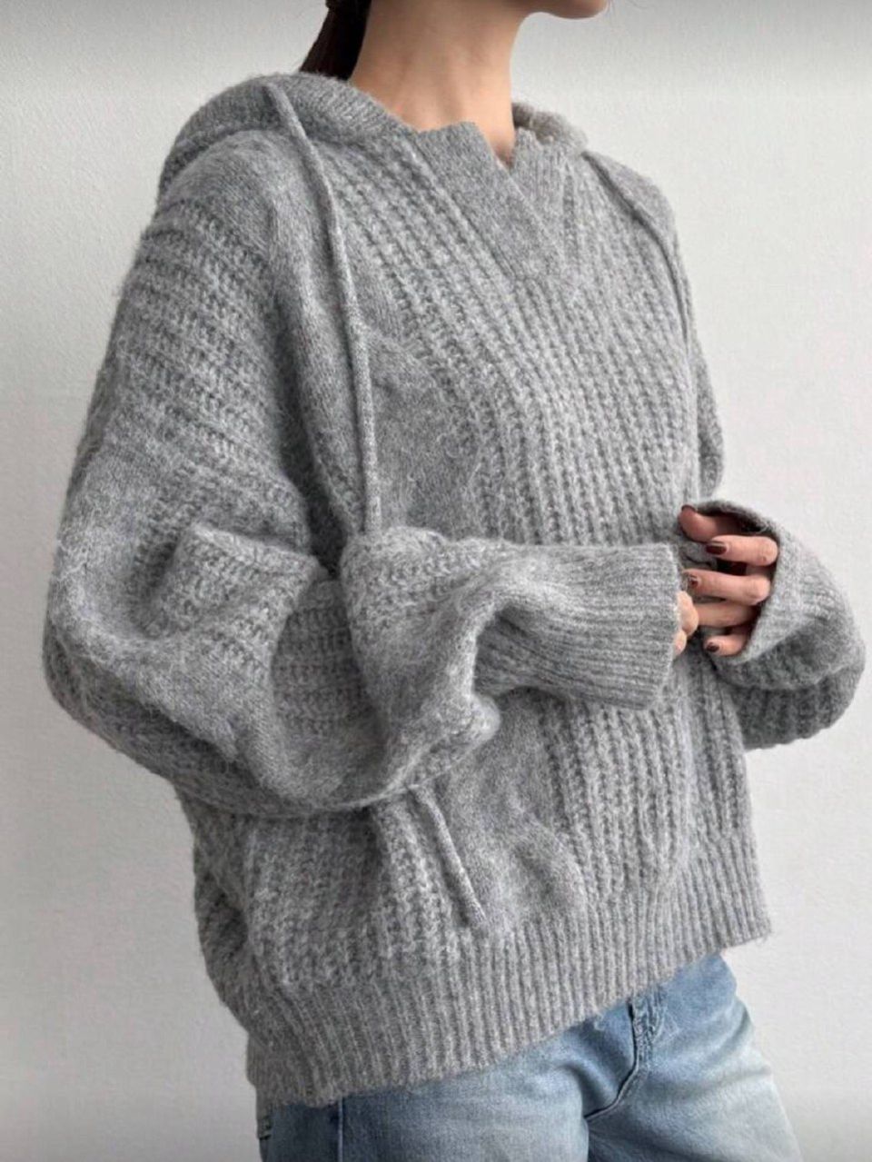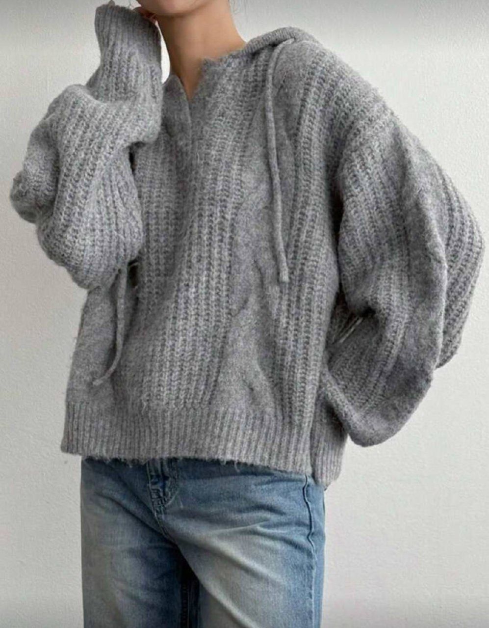 Dazy-Less كنزة صوفية كاجوال كبيرة الحجم بغطاء رأس مزخرفة بالكابل المحبوك، ملابس نسائية للخريف/الشتاء