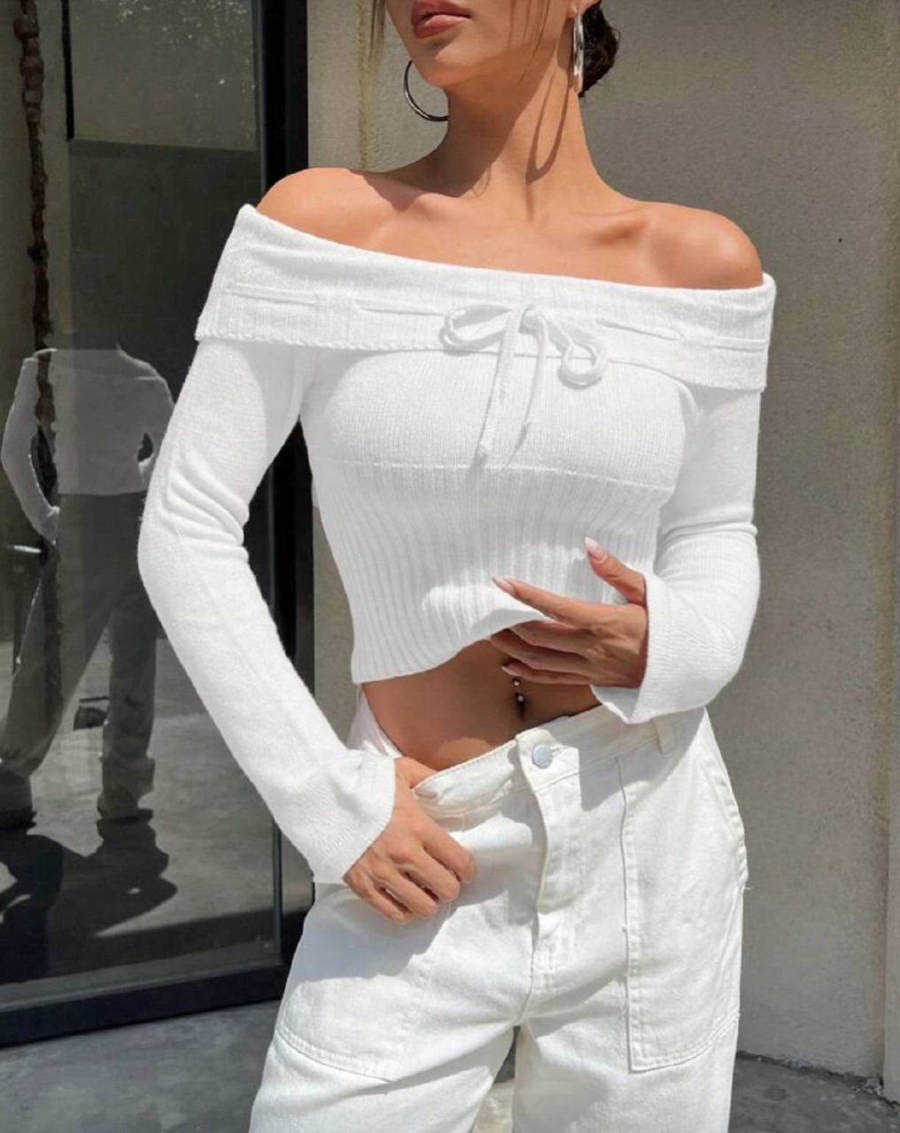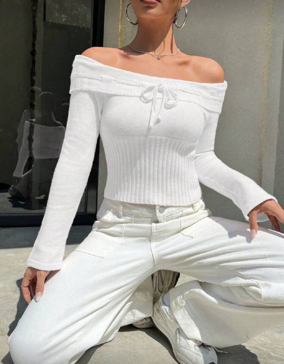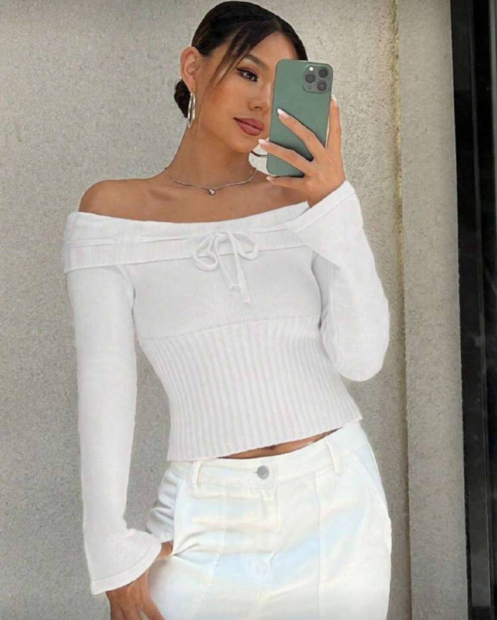 Flirla سترة نسائية بأكمام منسدلة وربطة جميلة على الكتف