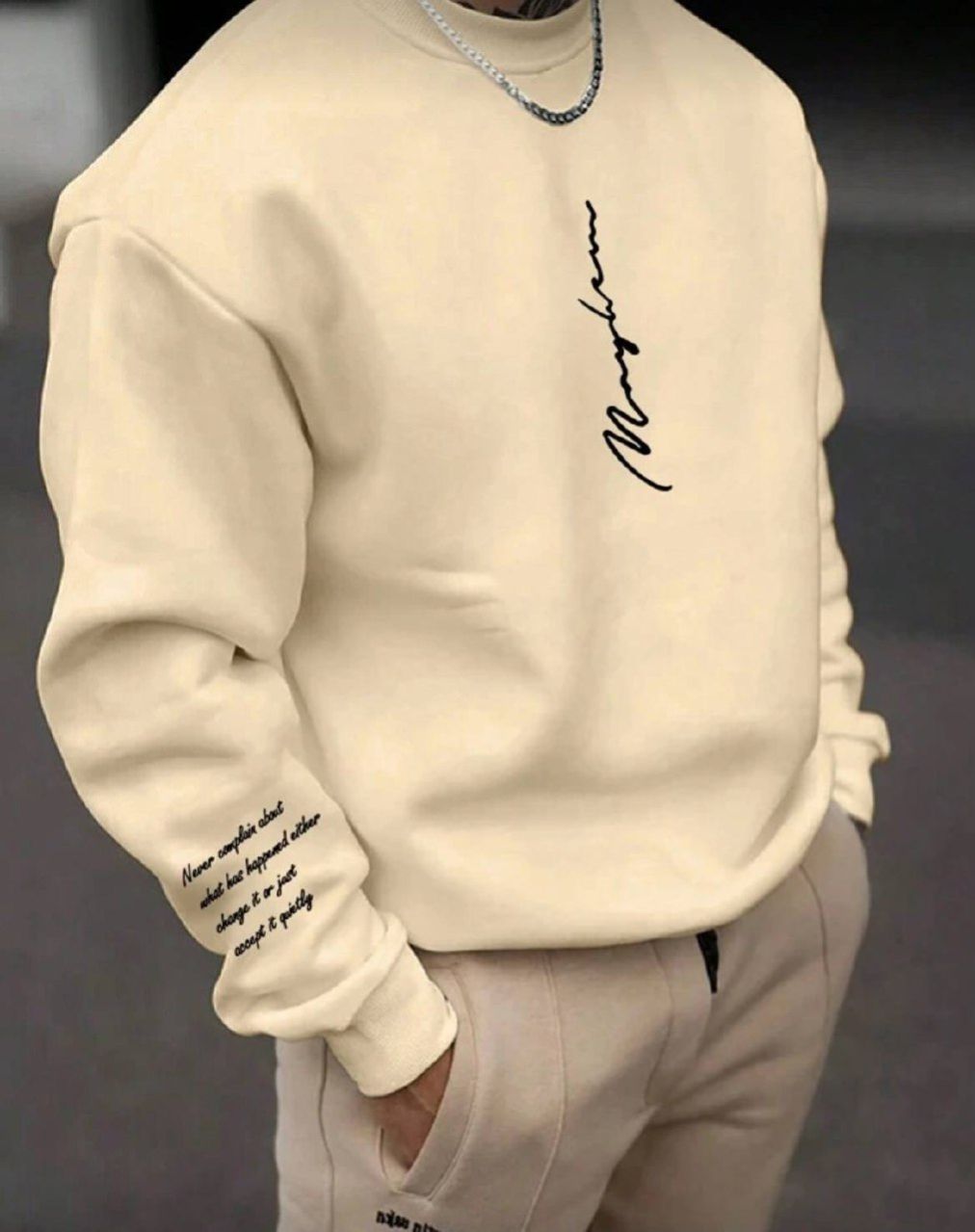 0 Review Of Product Manfinity Homme بلوزة رجالية فضفاضة بياقة مستديرة مطبوع عليها شعار، للخريف