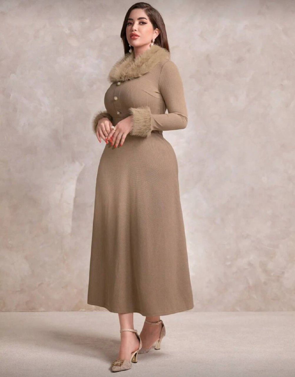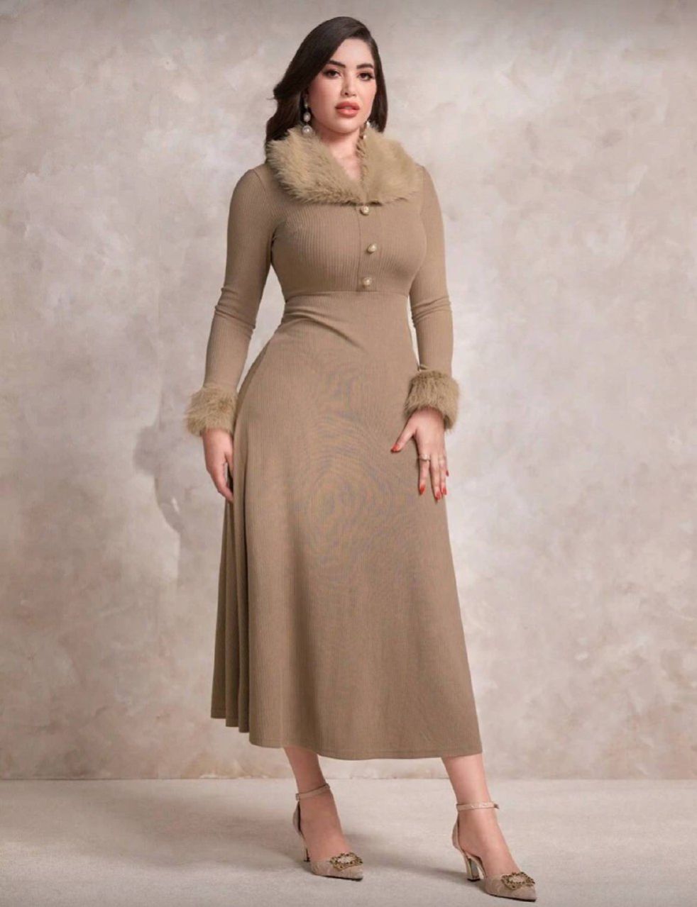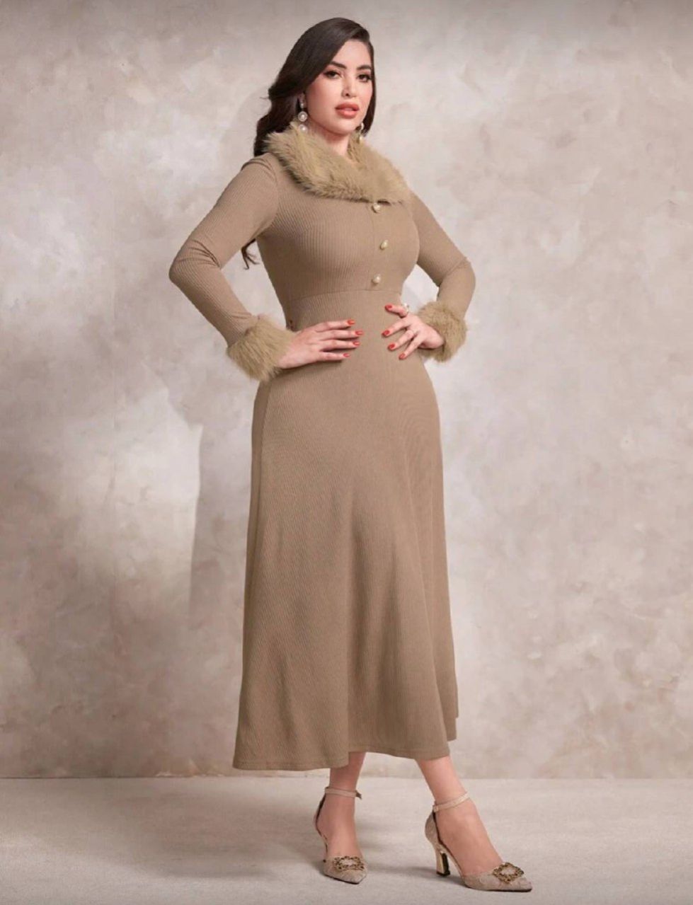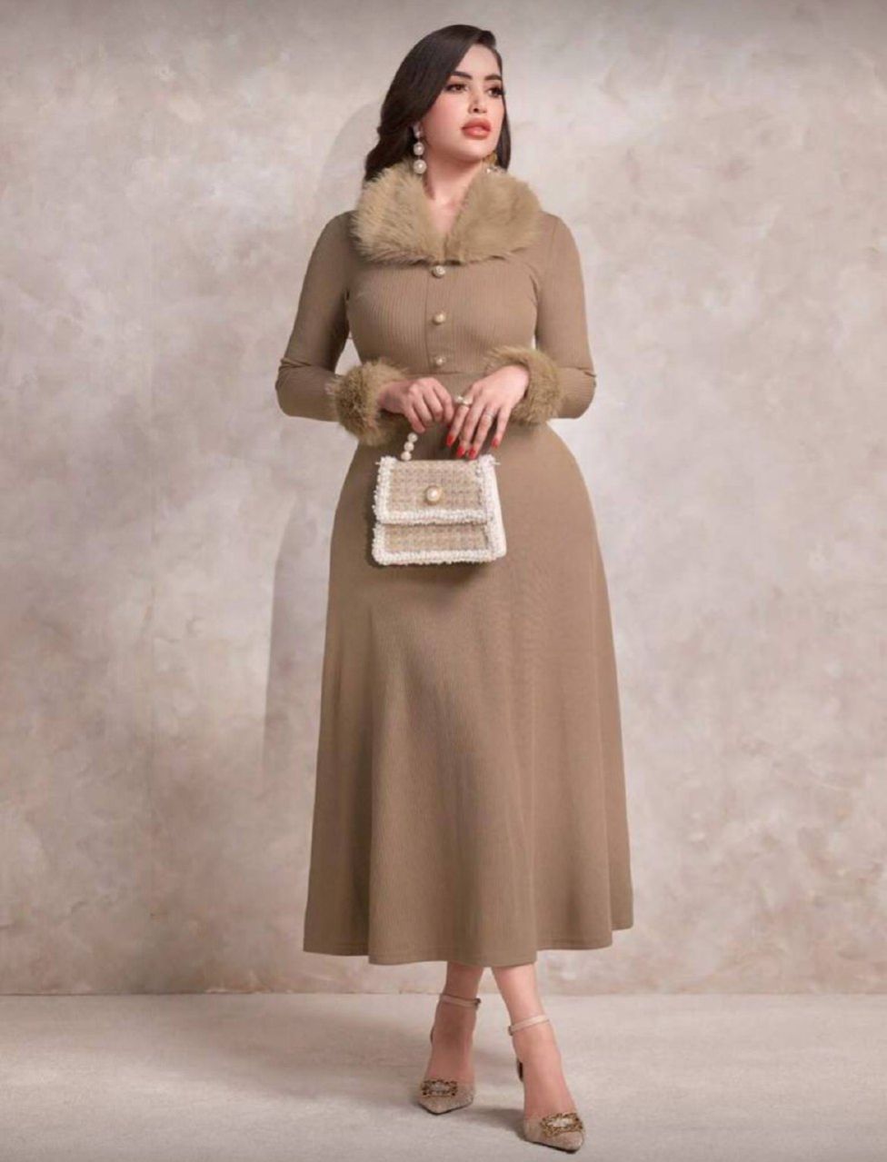 0 Review Of Product Modelyn فستان سهرة طويل للنساء، مصنوع من صوف مخلوط، ذو ياقة مفحة، بأسلوب عربي أنيق