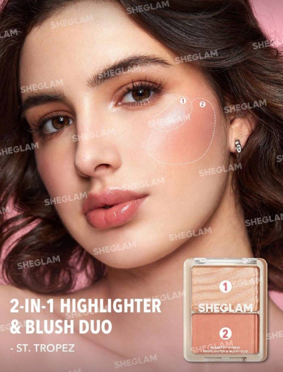 SHEGLAM مجموعة بودرة هايلايتر وأحمر خدود هجينة من Glam 101- Blush Highlighter Powder Palette غير قابلة للتلاشي ومتعددة الاستخدامات وغير دهنية ولامعة وخفيفة الوزن وناعمة أحمر خدود Pink Brown Rosa Blush حمره علامة تجارية جمال مكياج مستحضرات تجميل للنساء الفتيات مثالي لفصل الخريف الشتاء مثالي ل- Y2K أزياء أنيقة هدية حفلة جاهز أفضل لون