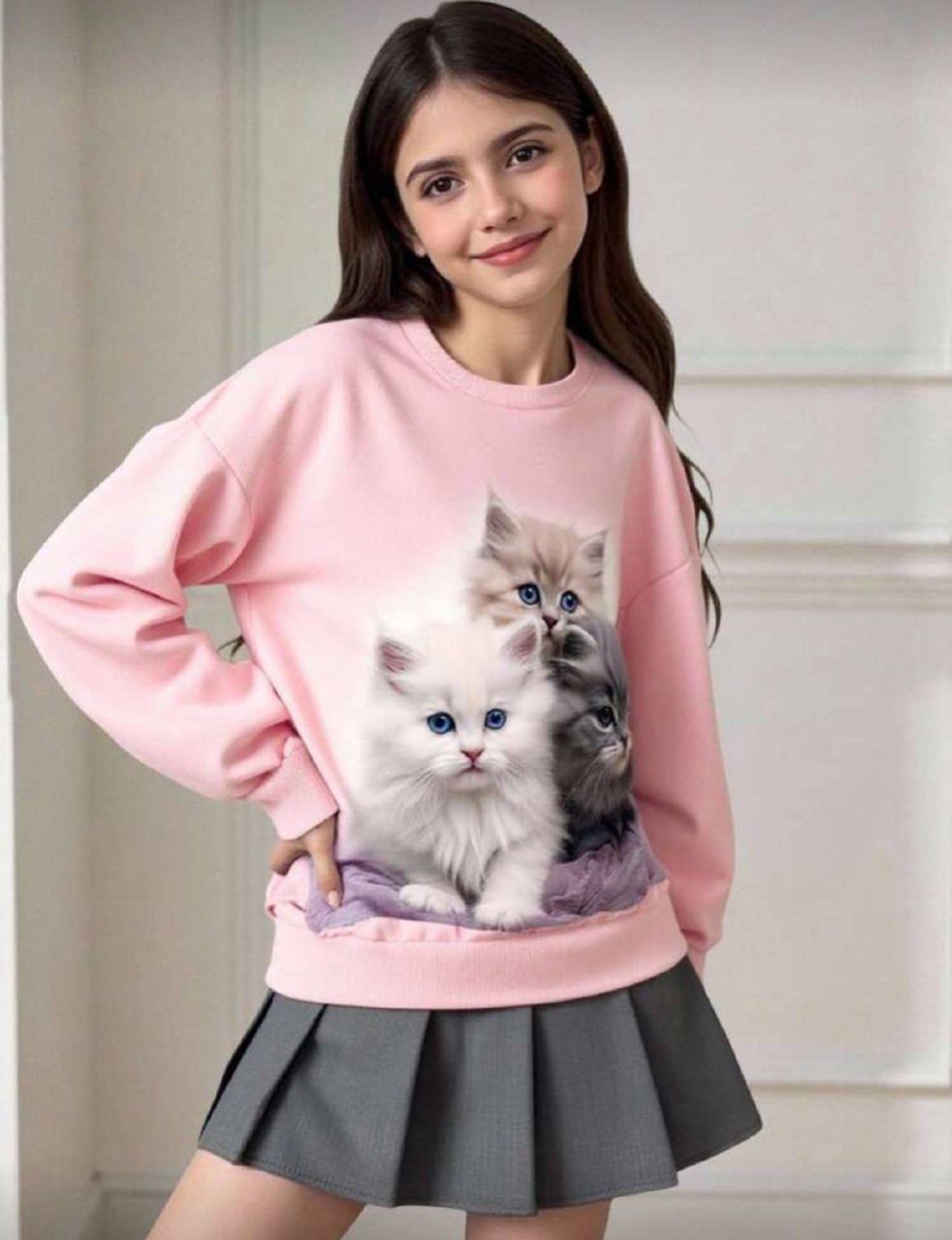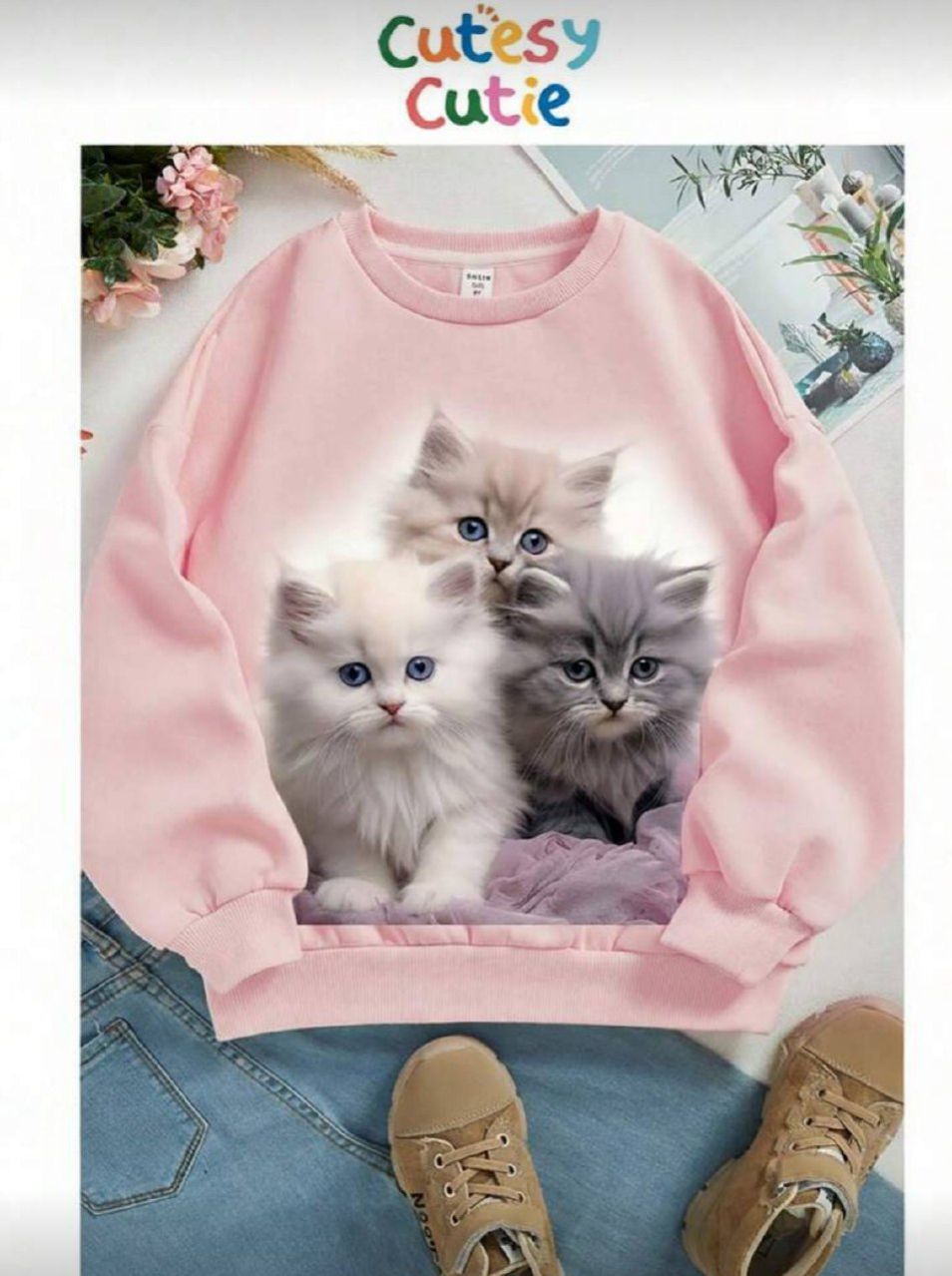 0 Review Of Product SHEIN بلوزة بياقة طاقم وأكمام طويلة مطبوع عليها رسم قطة، مناسبة للفتيات في سن المراهقة للاستخدام اليومي في فصلي الخريف والشتاء