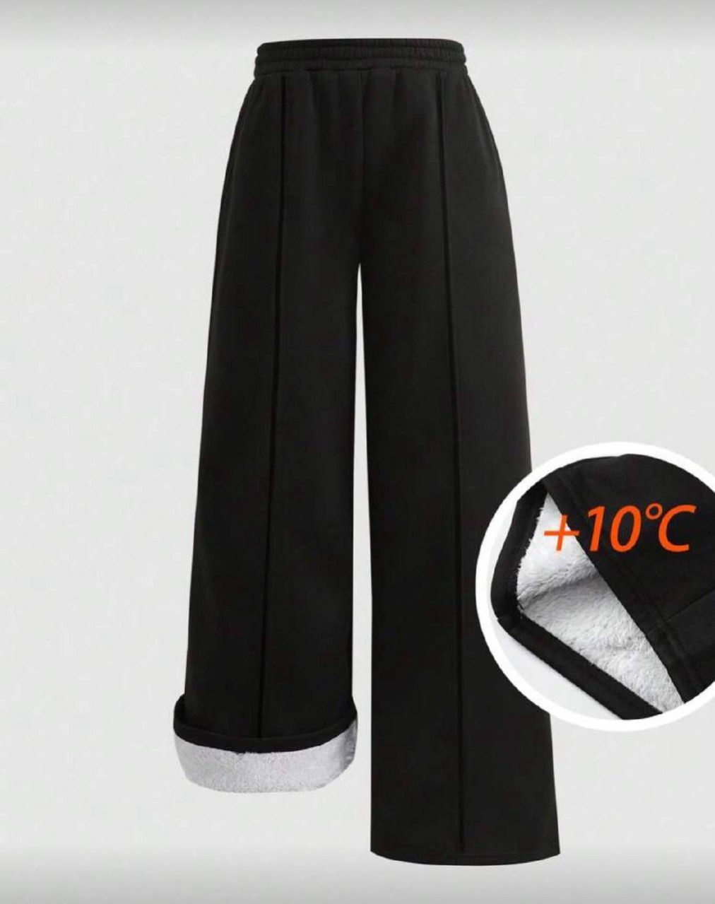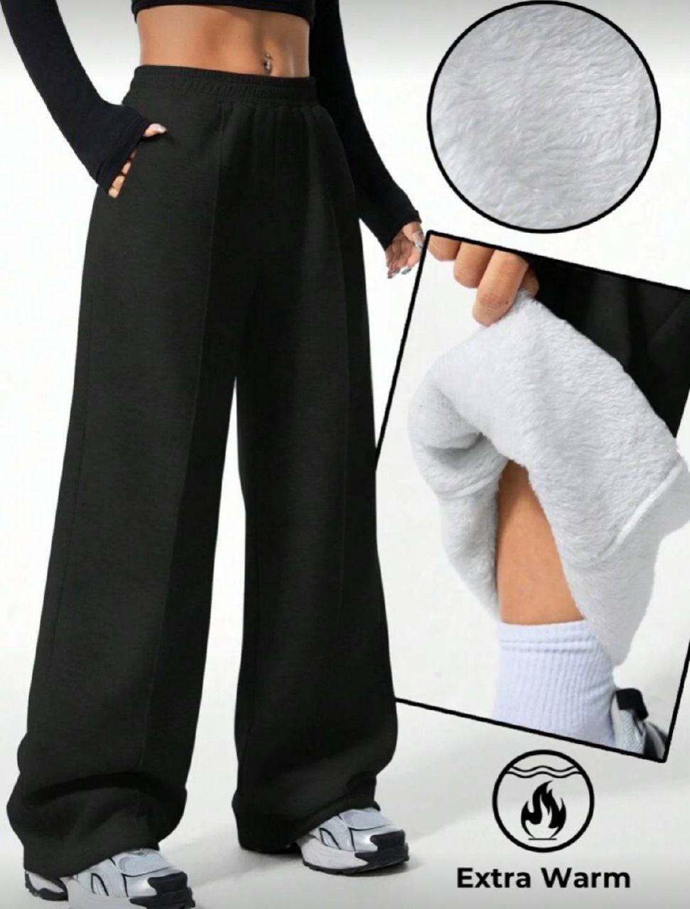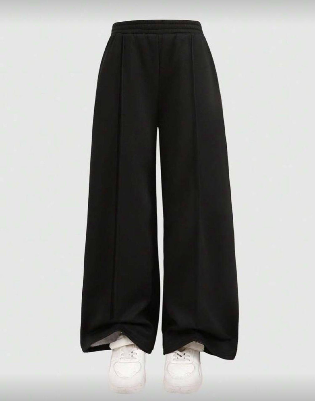 0 Review Of Product SHEIN بناطيل رياضية مريحة للفتيات المراهقات، مصنوعة من قماش ناعم مبطن بالفليس، ذات ساق مستقيمة وواسعة، لون أسود، للأطفال