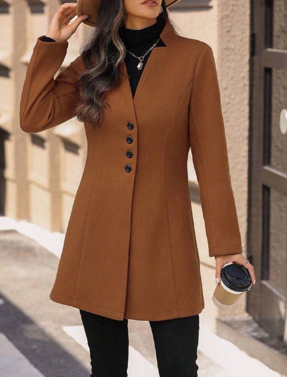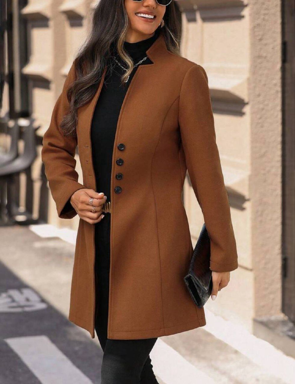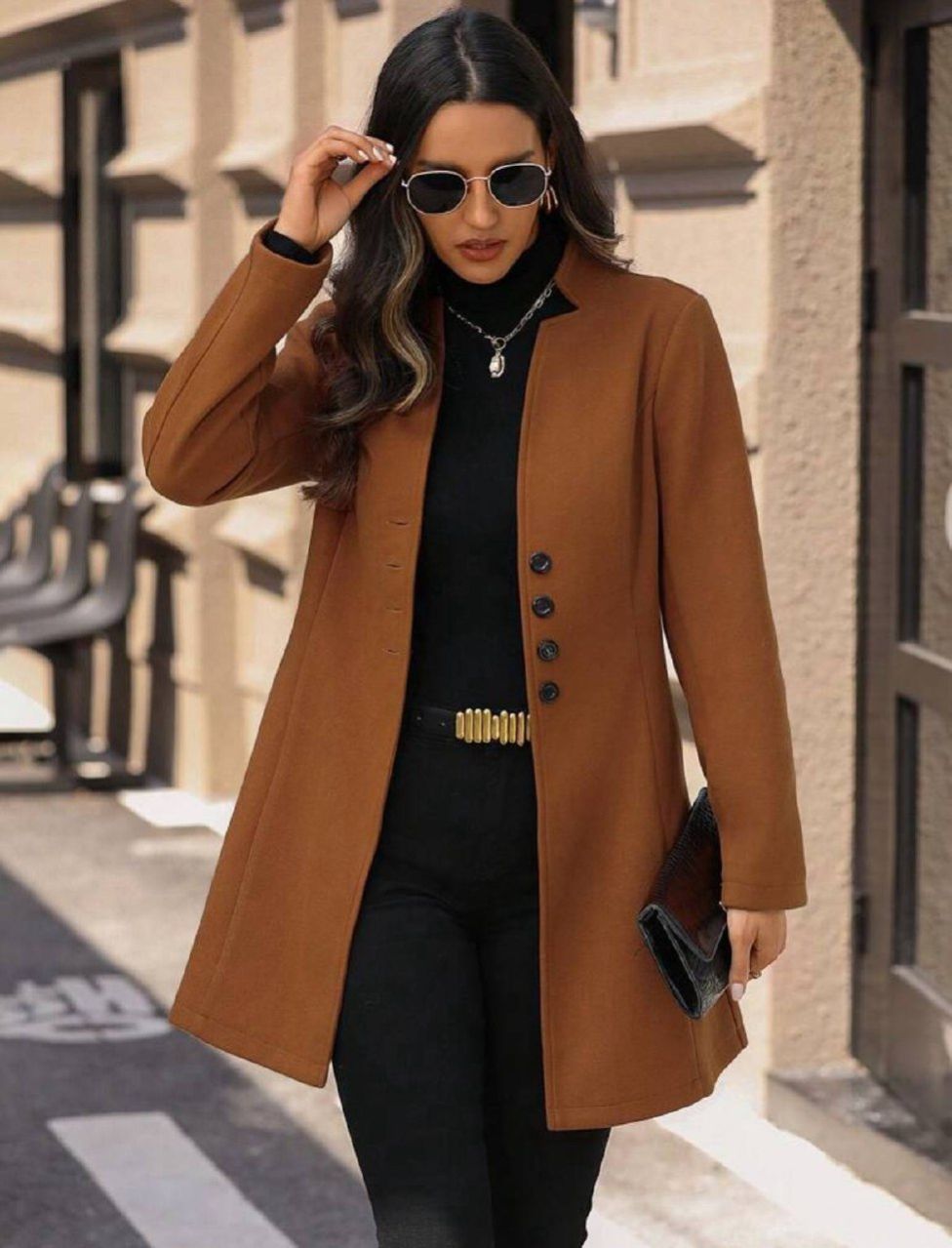 0 Review Of Product SHEIN Clasi معطف صوفي مناسب مقاسات للنساء، طوق عالي وذو تصميم مناسب الجسم