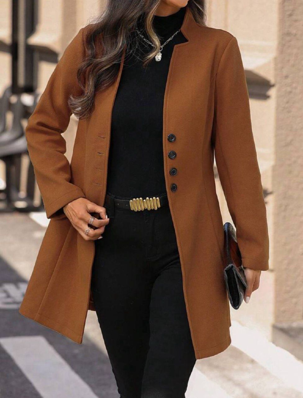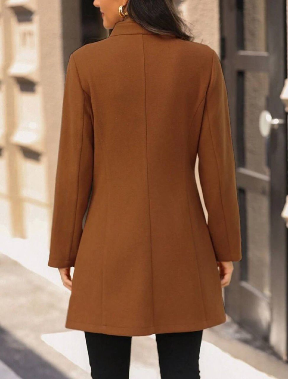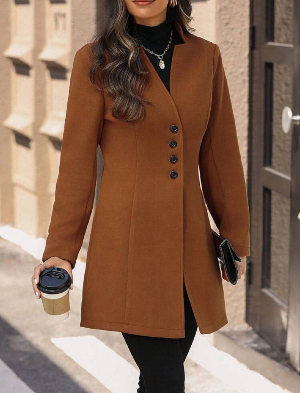 0 Review Of Product SHEIN Clasi معطف صوفي مناسب مقاسات للنساء، طوق عالي وذو تصميم مناسب الجسم