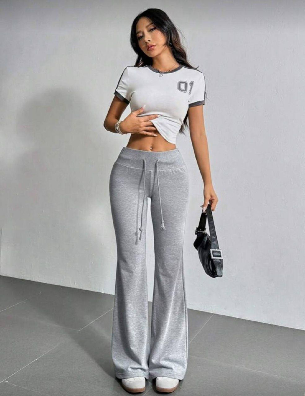 SHEIN EZwear سروال رياضي بأرجل واسعة ورباط على الخصر