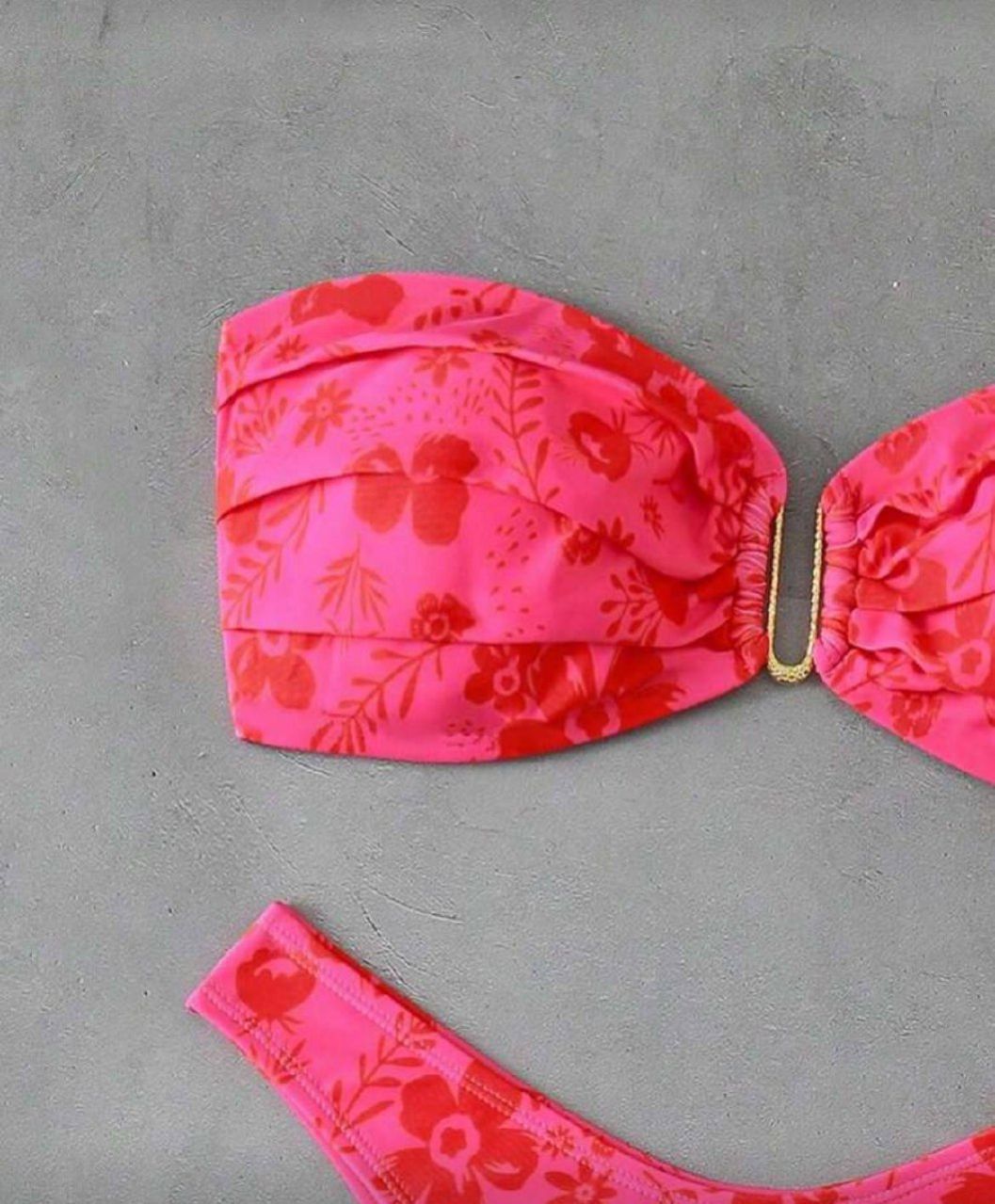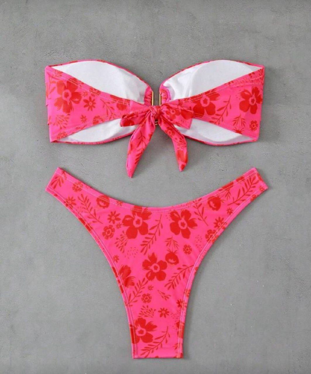 0 Review Of Product Swim Mod بيكيني نسائي مطبوع بالأزهار من قطعتين بقصة هالتر مفتوقة