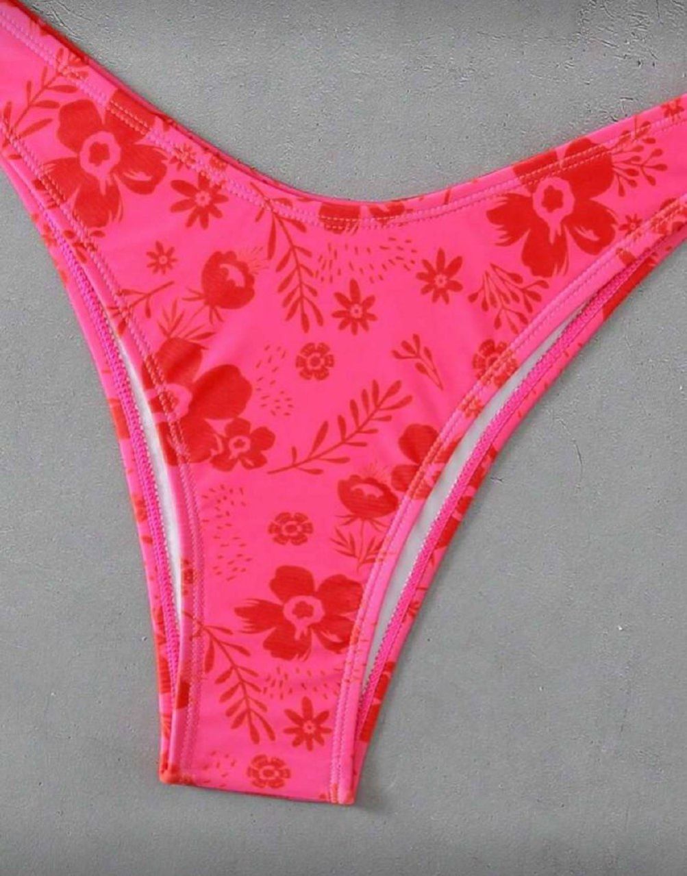Swim Mod بيكيني نسائي مطبوع بالأزهار من قطعتين بقصة هالتر مفتوقة