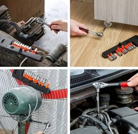 12 قطعة مجموعة مفتاح ربط رقاقي، مصنوع من الصلب المطلي بالكروم بحجم 1/4 بوصة و 1/2 بوصة ذو اتجاهين، مجموعة مفتاح ربط رقاقي سداسي متعدد الوظائف لأدوات إصلاح السيارات