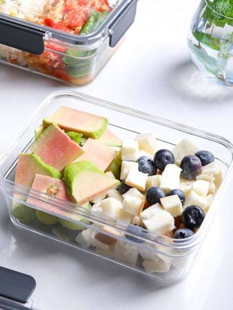 SHEIN Basic Living سيت تخزين طعام واضح مكون من ثلاث قطع باحجام مختلفة ، حاوية تخزين الطعام البلاستيكية للمنزل والمكتب والمطبخ قطعة واحدة