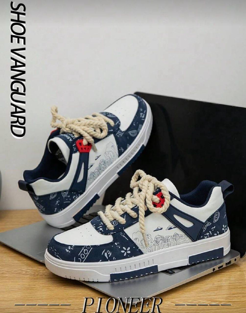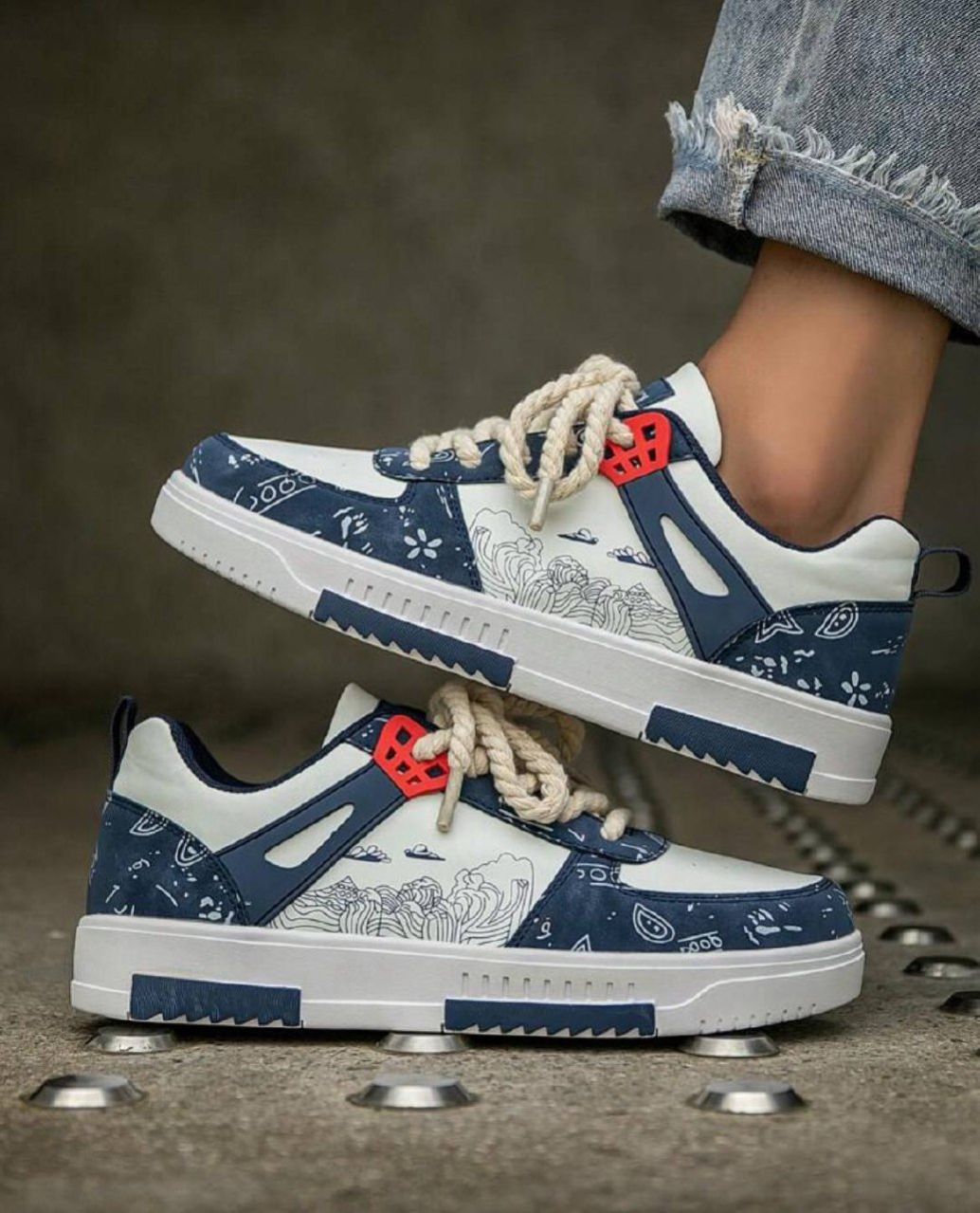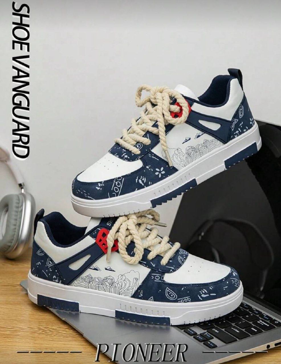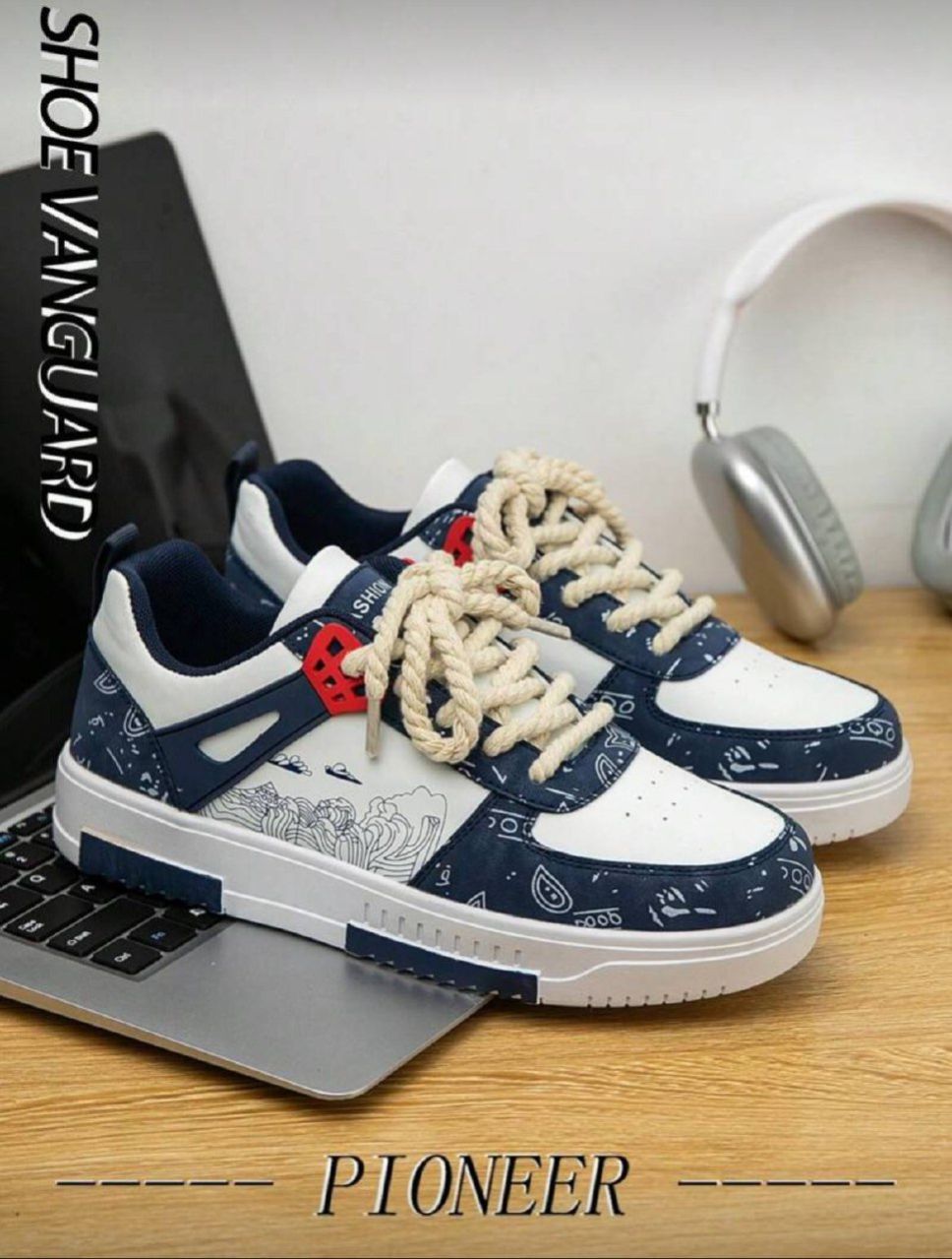 0 Review Of Product أحذية رياضية رجالية بتصميم ألوان متباينة مطبوعة ومرقعة ذات أصابع مستديرة منخفضة، أحذية كاجوال خارجية مخصصة للأزواج مناسبة لجميع المواسم