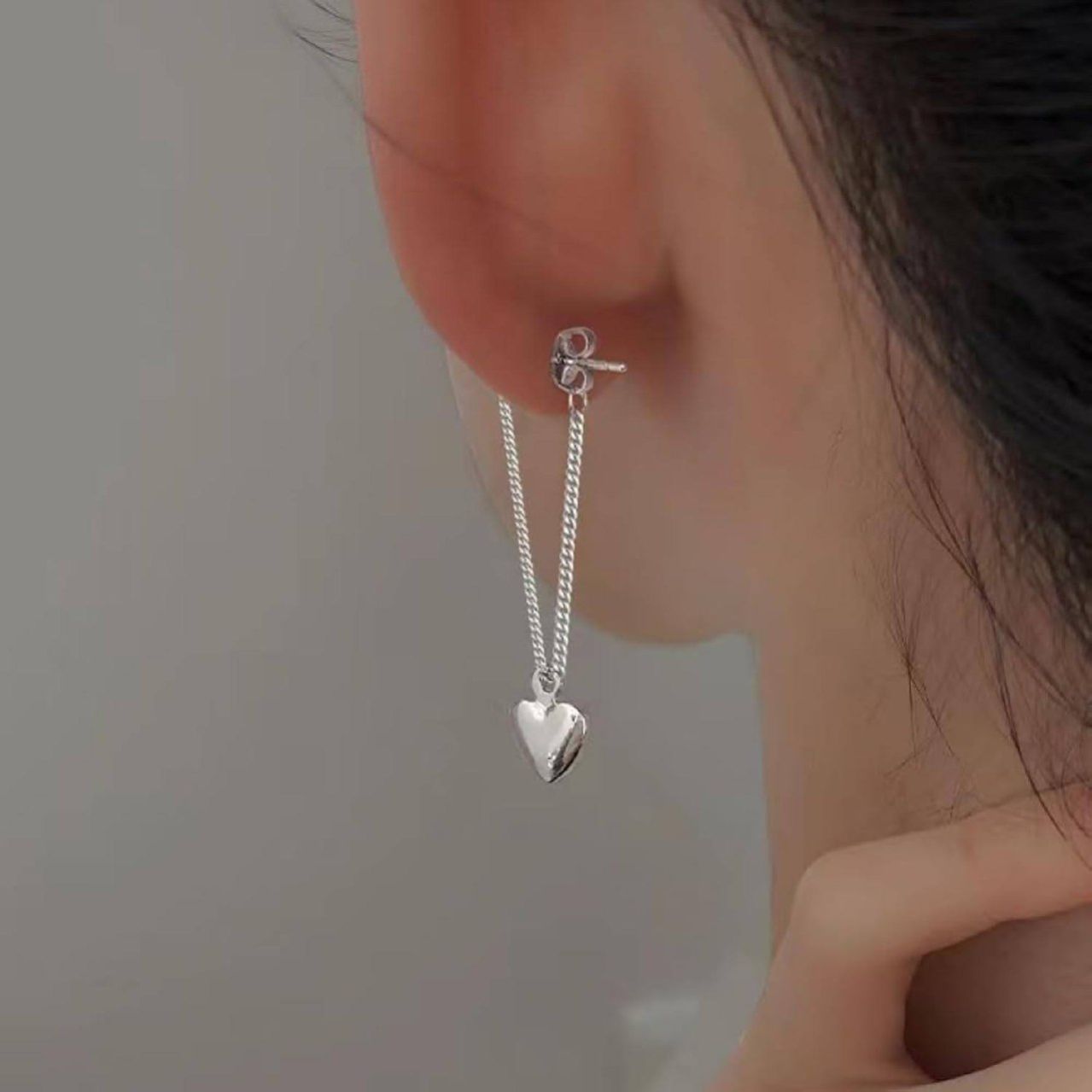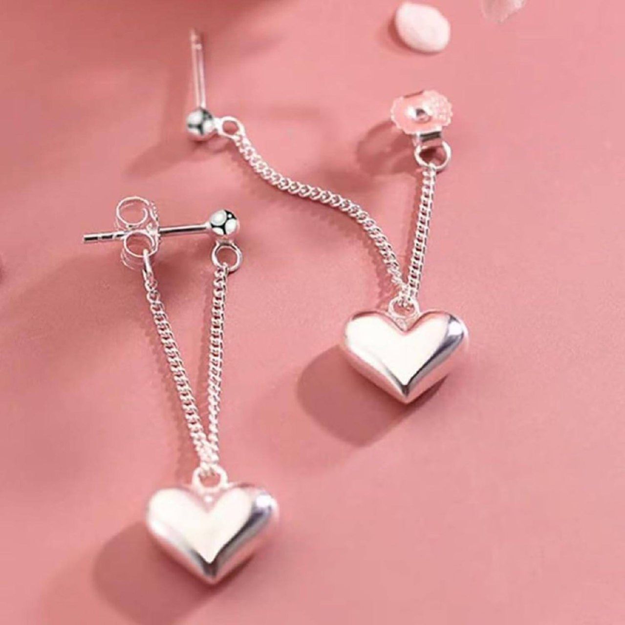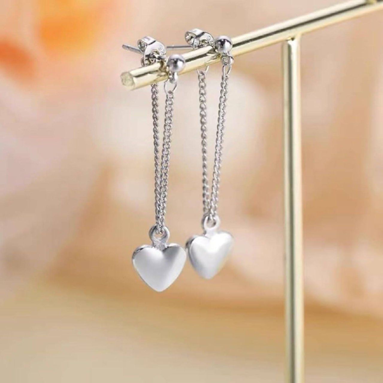 أقراط متدلية على شكل قلب للنساء، من الفضة الإسترلينية عيار 925، أقراط متدلية بشراشيب للنساء، هدية مجوهرات، فضية، ليست من الأحجار الكريمة