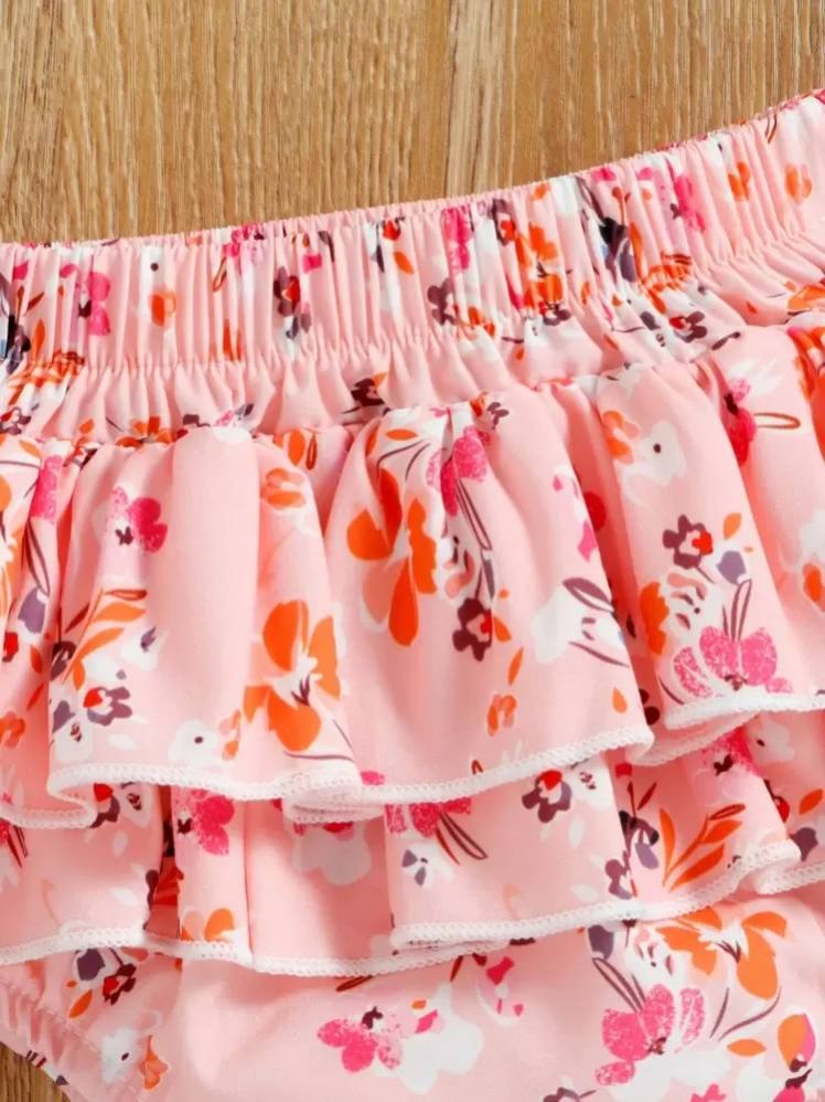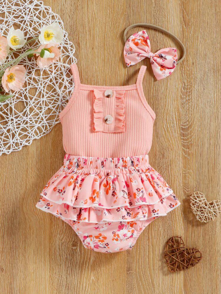 بدلة أطفال مكشكشة وشورت ذو حواف متعددة الطبقات وعصابة رأس كإكسسوار
