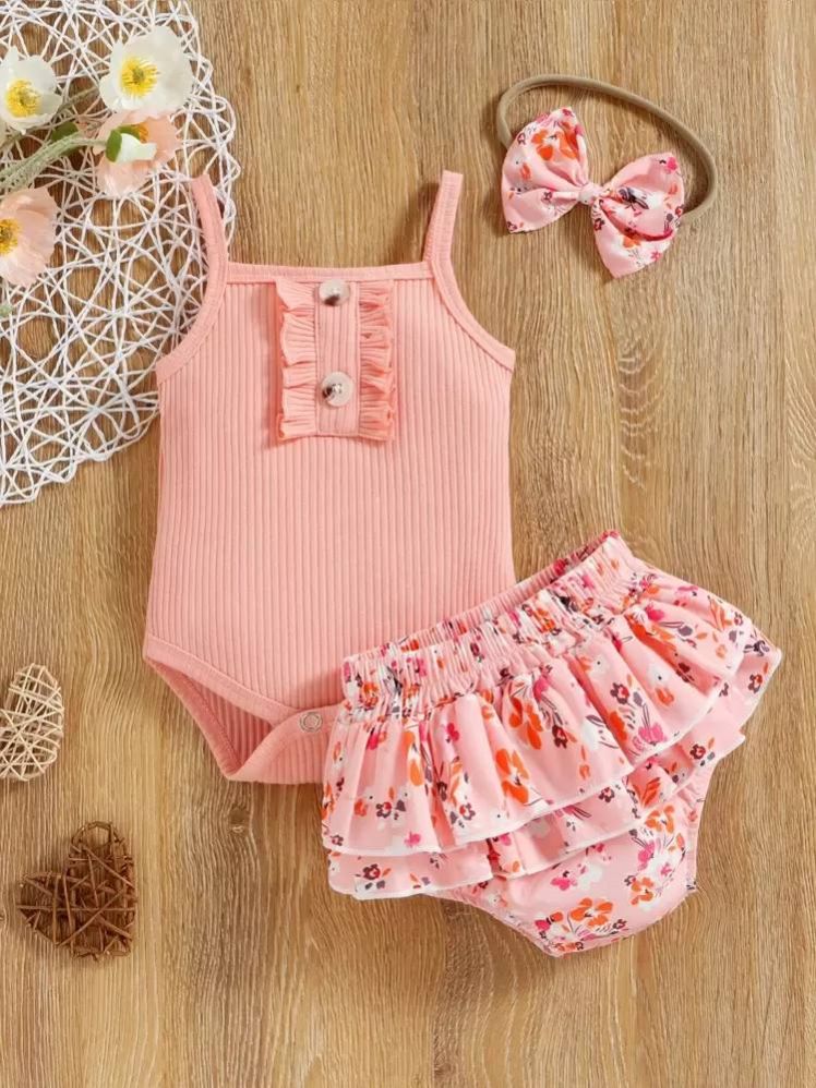 0 Review Of Product بدلة أطفال مكشكشة وشورت ذو حواف متعددة الطبقات وعصابة رأس كإكسسوار