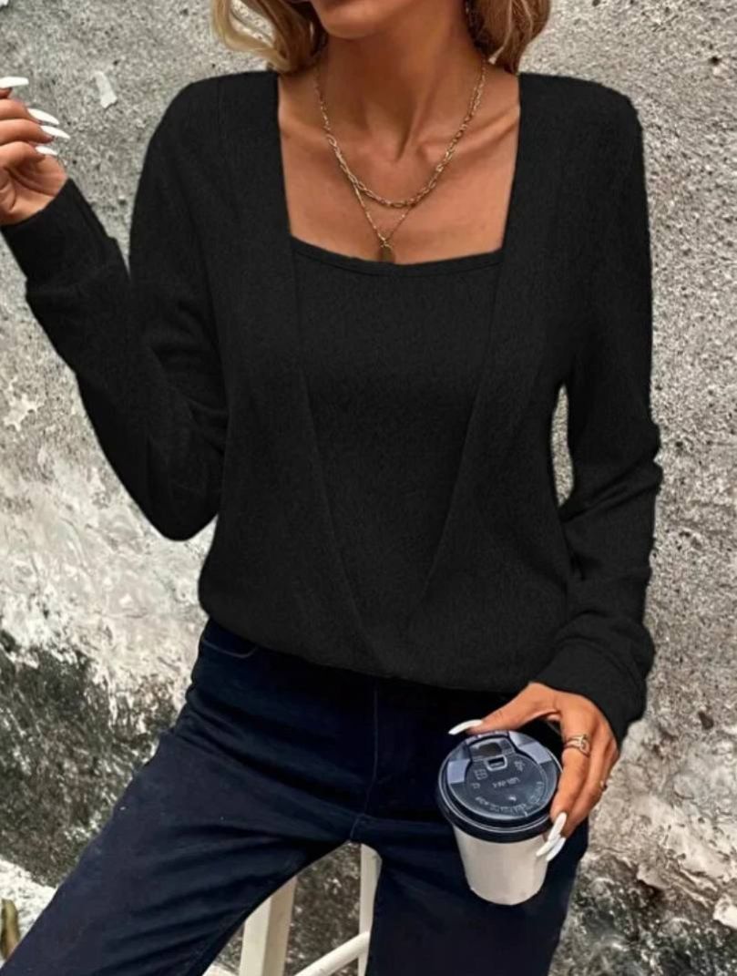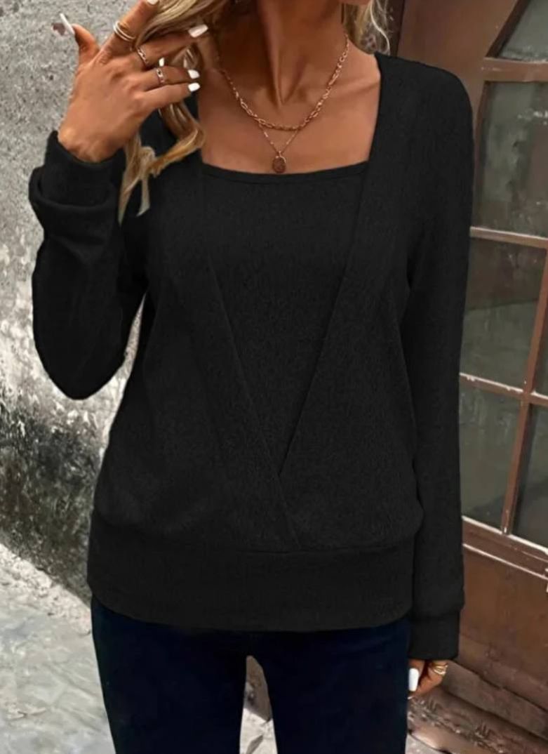 بلوزة نسائية من COjans بأكمام طويلة وياقة ملفوفة مع تفاصيل أساور على الأكمام والحافة