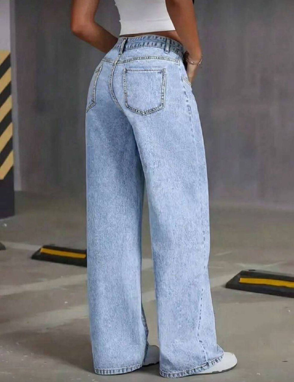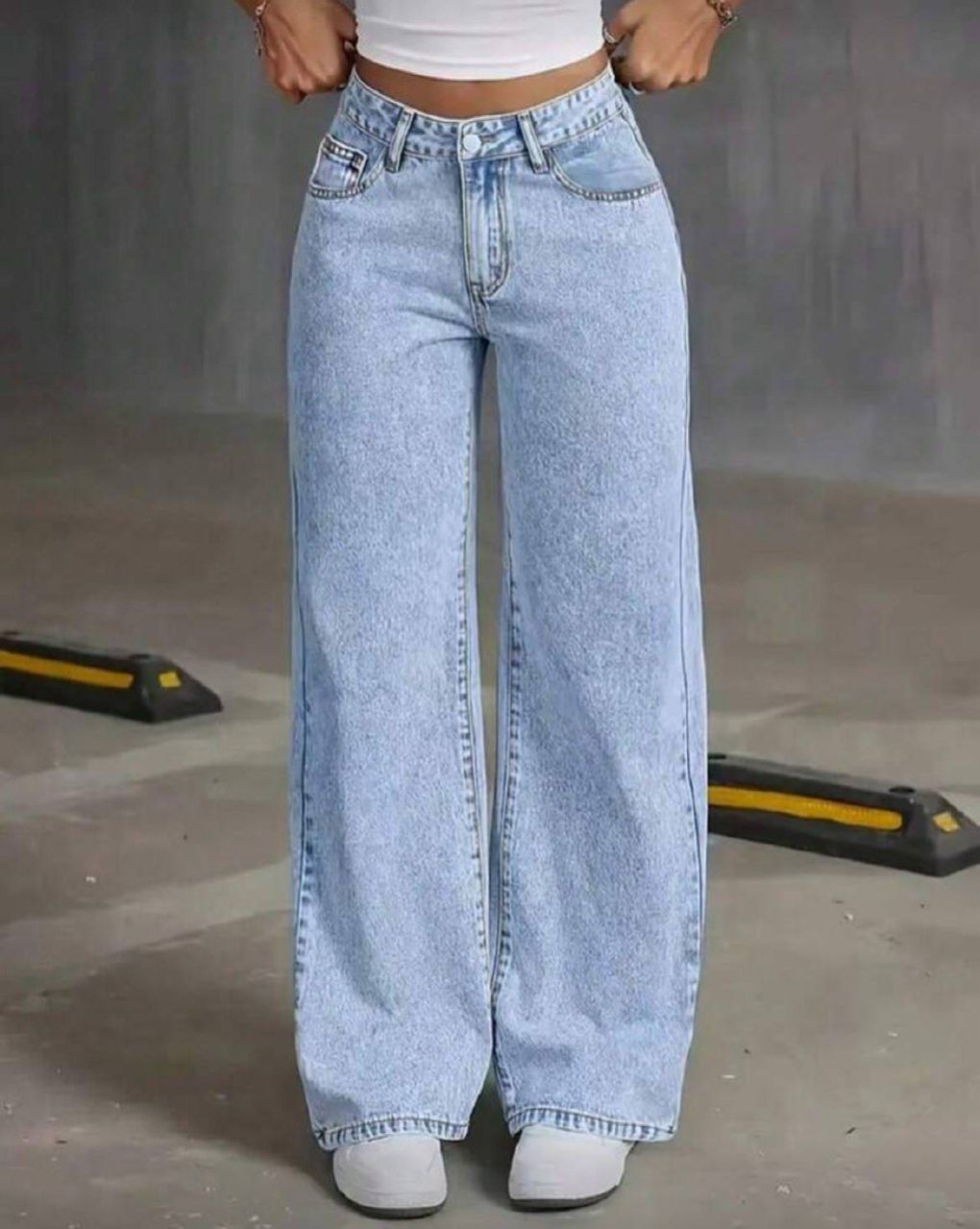 بنطلون جينز مستقيم الساق مع جيوب أمامية وأزرار، للارتداء اليومي للنساء