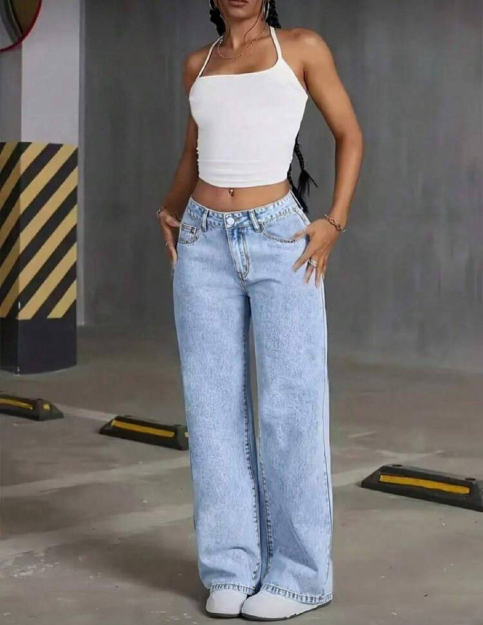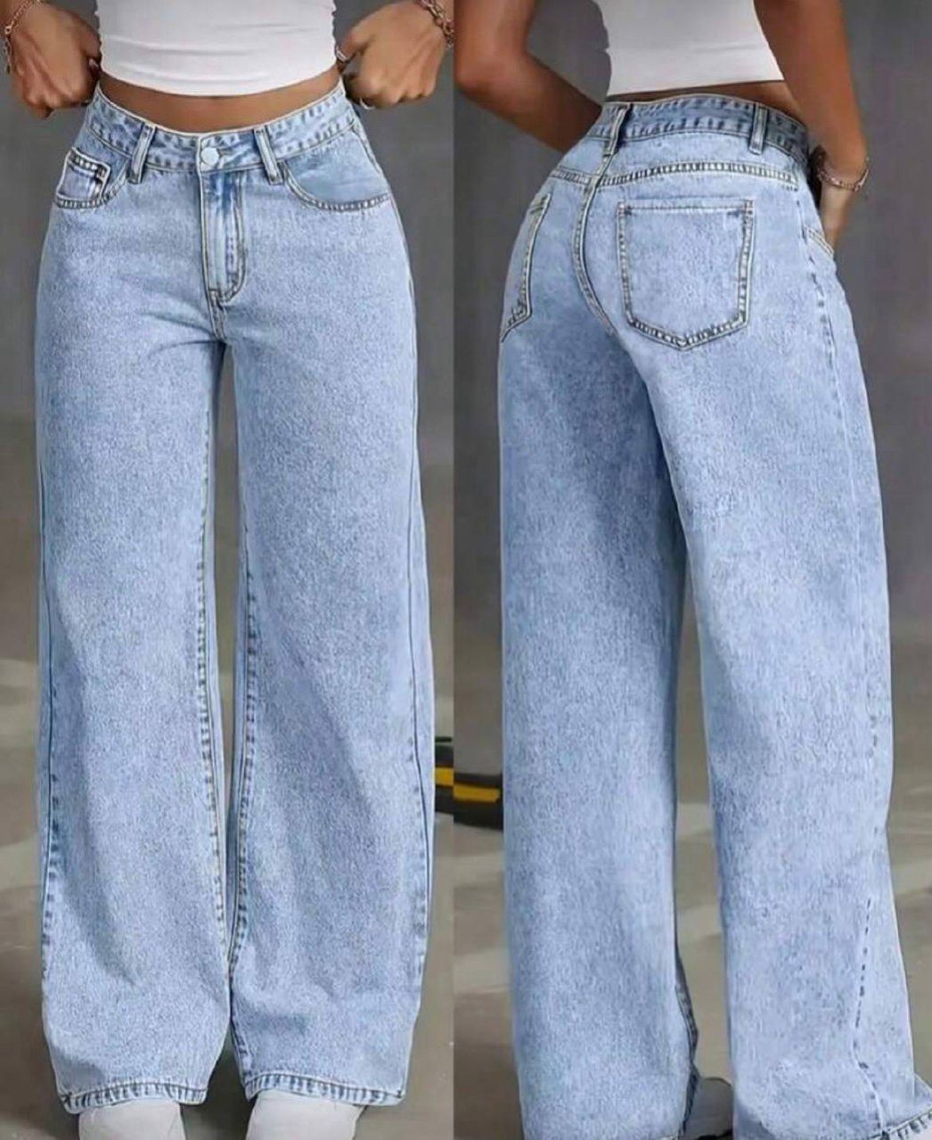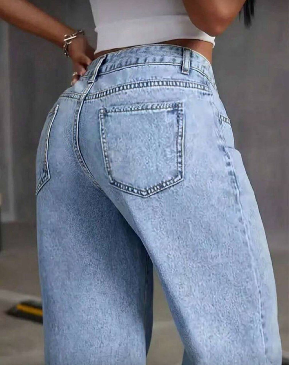 0 Review Of Product بنطلون جينز مستقيم الساق مع جيوب أمامية وأزرار، للارتداء اليومي للنساء