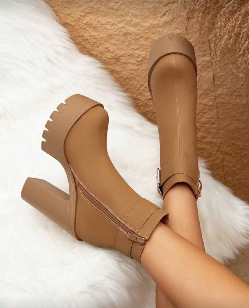 بوت الكاحل والأحذية القصيرة للنساء موضة 2025، خريف/شتاء، طراز جديد، بوت بطراز بريطاني، بوت قصيرة للنساء، كعب سميك، تناسب كل المناسبات، منصة مزدوجة مقاومة للماء، كعب عالي، بوت نسائية سميكة الأسفل مع حزام مشبك