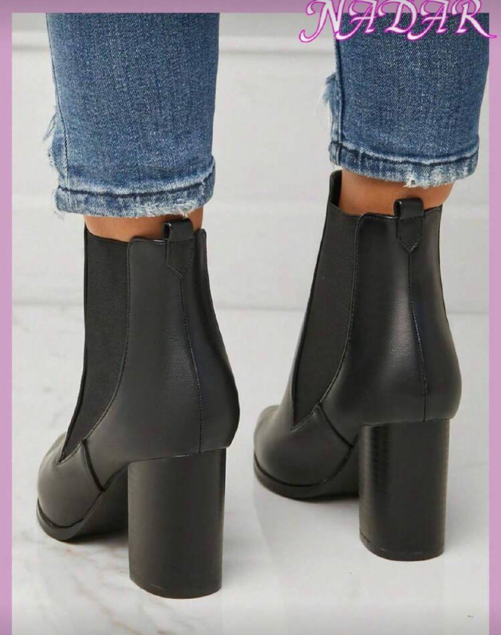 0 Review Of Product بوت تشيلسي للنساء ذات كعب مربع وأصبع مدبب، بوت قصيرة مزيفة من الجلد للخروج والتنقل، مناسبة للخريف والشتاء