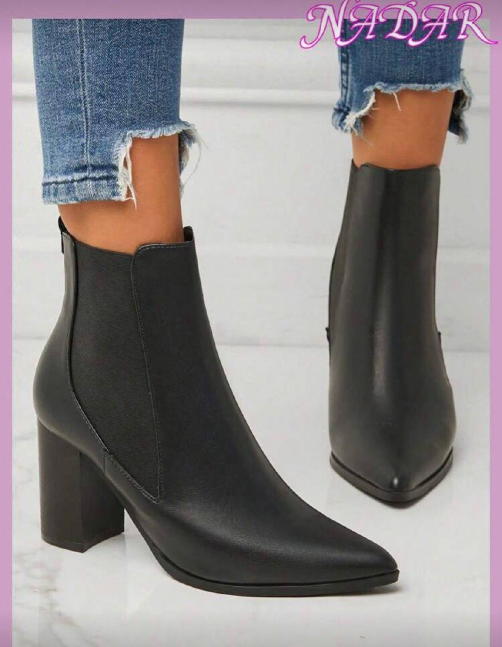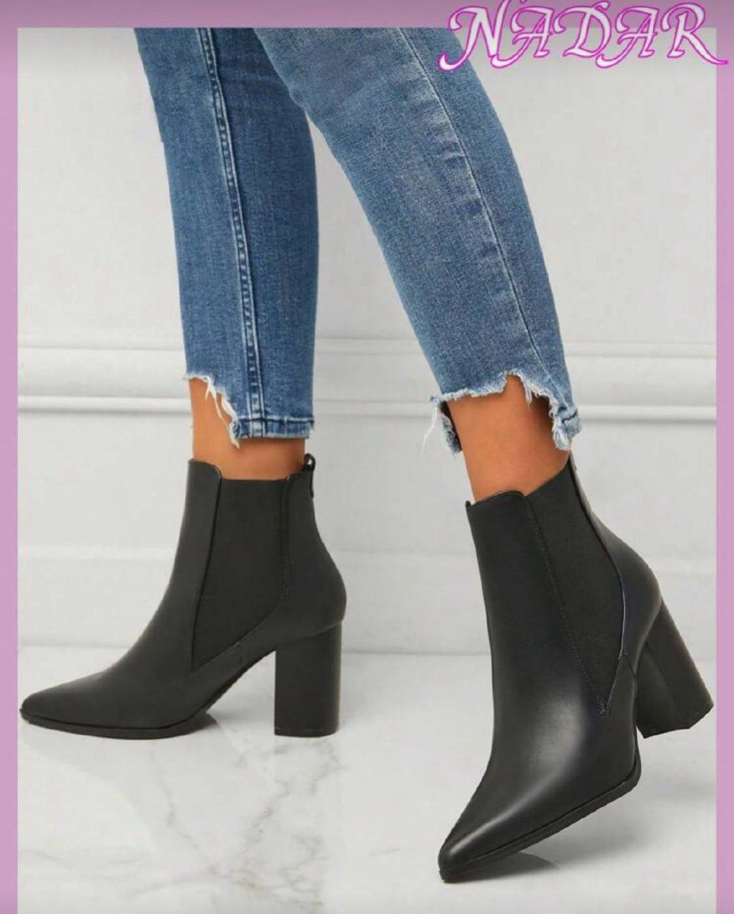 بوت تشيلسي للنساء ذات كعب مربع وأصبع مدبب، بوت قصيرة مزيفة من الجلد للخروج والتنقل، مناسبة للخريف والشتاء