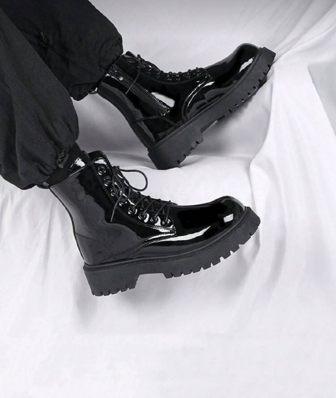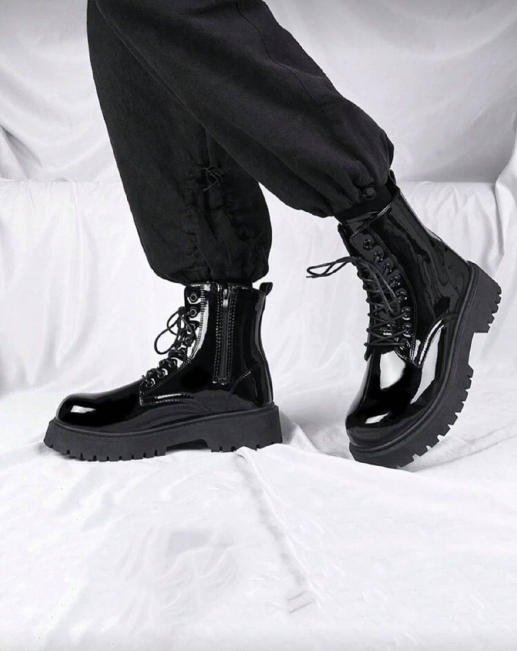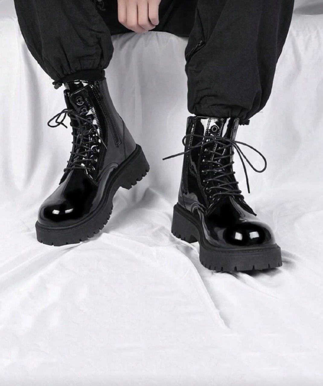 0 Review Of Product بوت خارجية للرجال موديل جديد للخريف بوت دبابات بوت حمولة - بوت الرجال أسلوب بريطاني موديل جديد سميكة القاعدة بوت دبابات من الجلد عالية الكاحل ذات لمعان