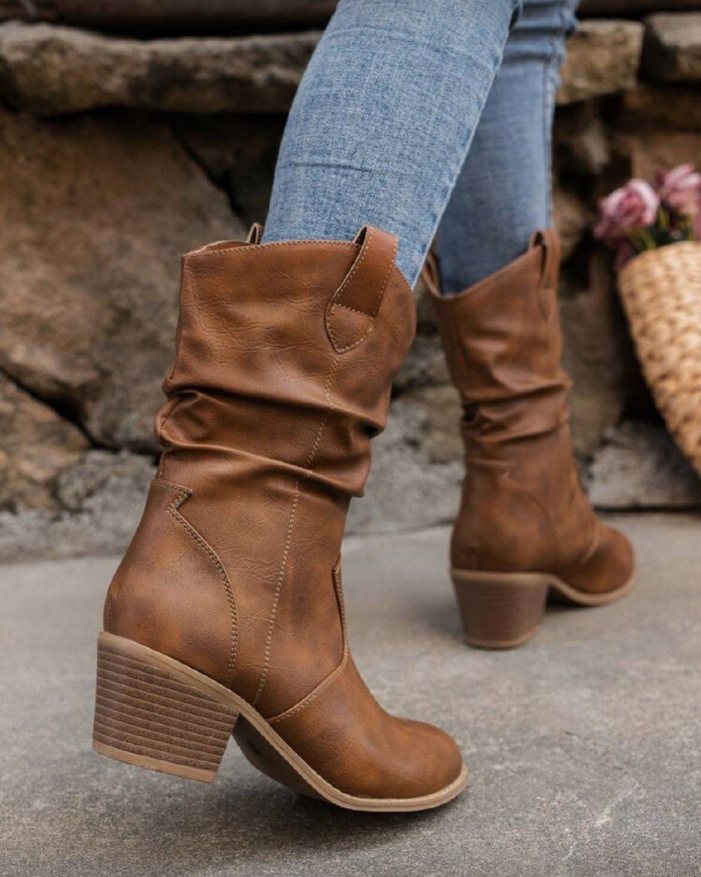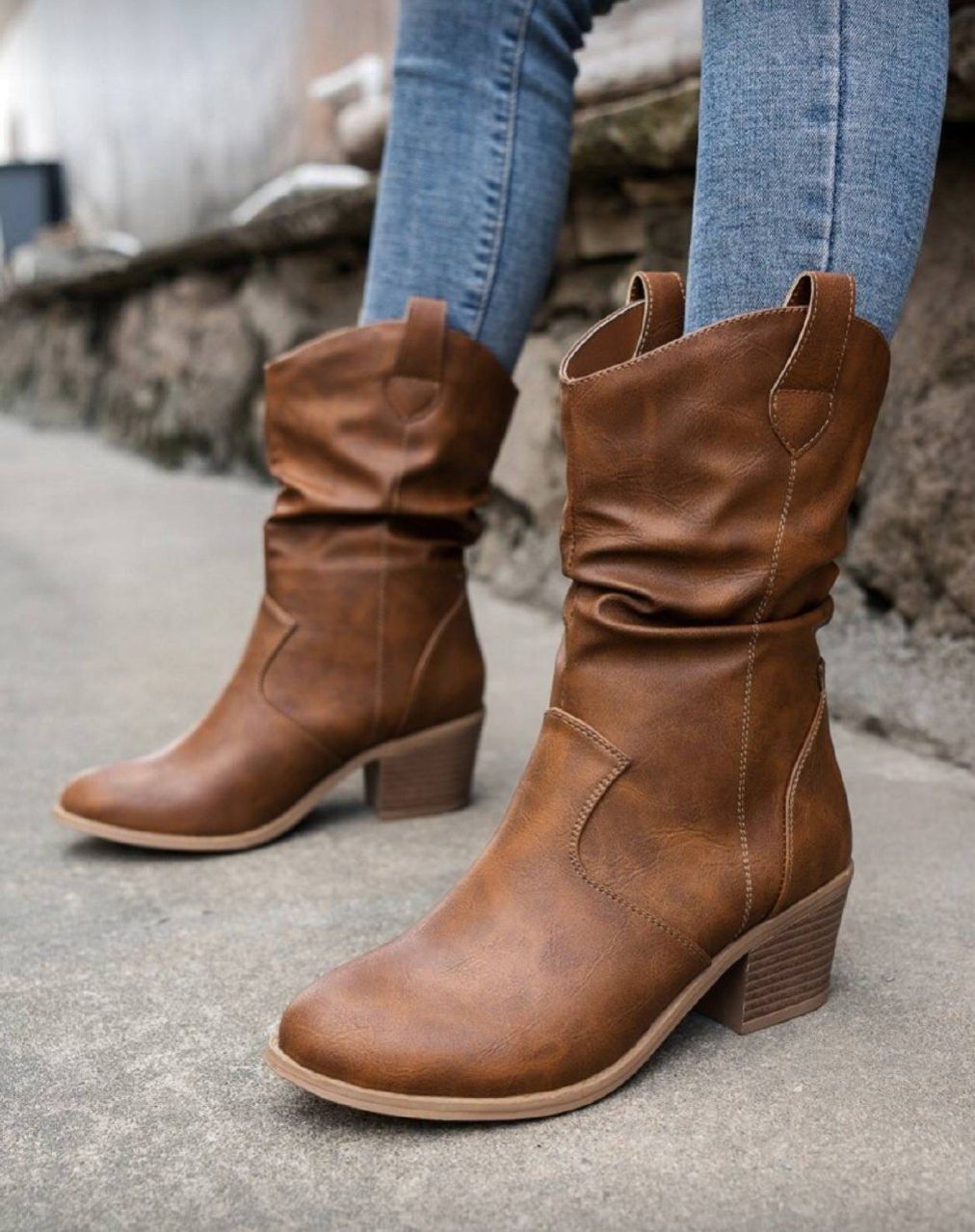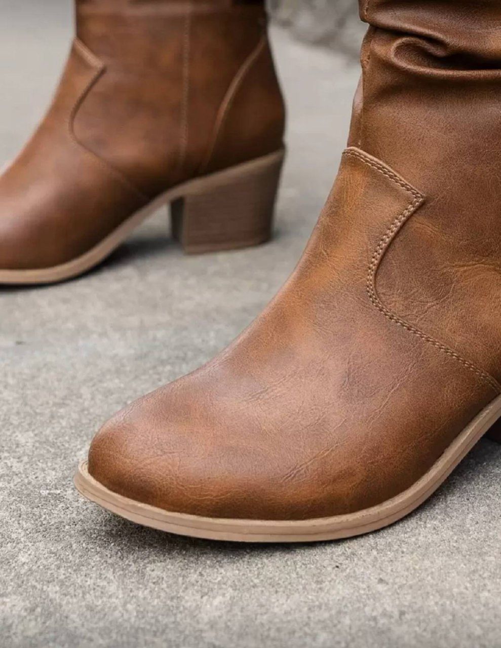 0 Review Of Product بوت غربية للنساء ذات كعب مربع وأصبع مدبب، ديكور رقعة للموسم الانتقالي بين الخريف والشتاء