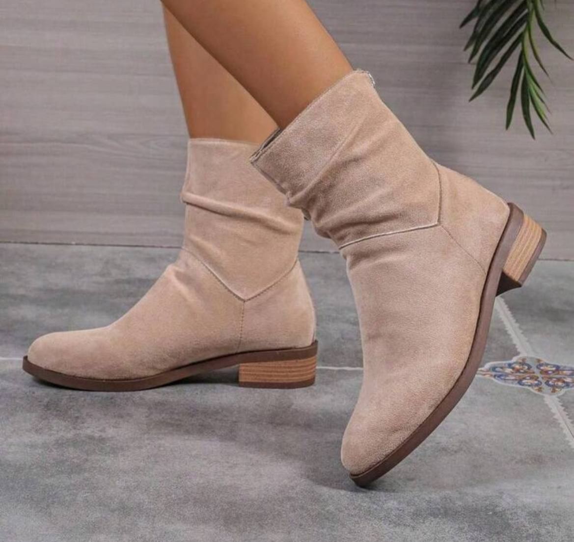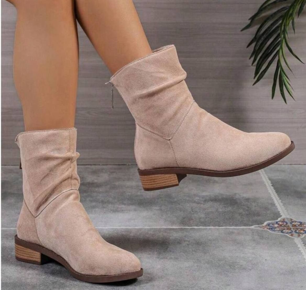 بوت نسائية قصيرة عصرية بسحاب خلفي، لون أحادي، بطراز أوروبي وأمريكي رجعي، طراز غربي جديد للخريف