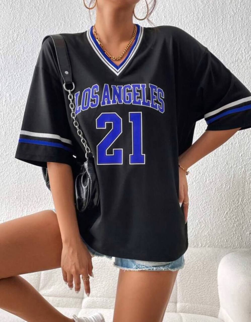 تي شيرت INAWLY برسومات جرافيكية وخطوط وأكتاف منسدلة، تي شيرتات جرافيكية للنساء