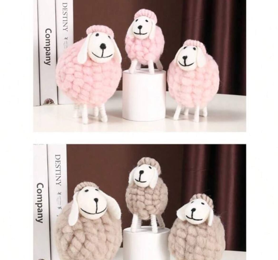 ثلاث قطع تمثال خروف زخرفي باللون الوردي اكسسوار ديكور المنزل والمكتب والغرفة، تصميم إبداعي وجميل