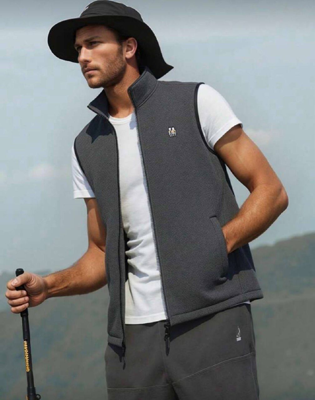 جاكيت رجالي بياقة عالية أحادية الطبقة من التريكو ، جاكيت غير مبطنة مناسبة للخارج، مناسبة للنزهات والسفر والصيد في الهواء الطلق