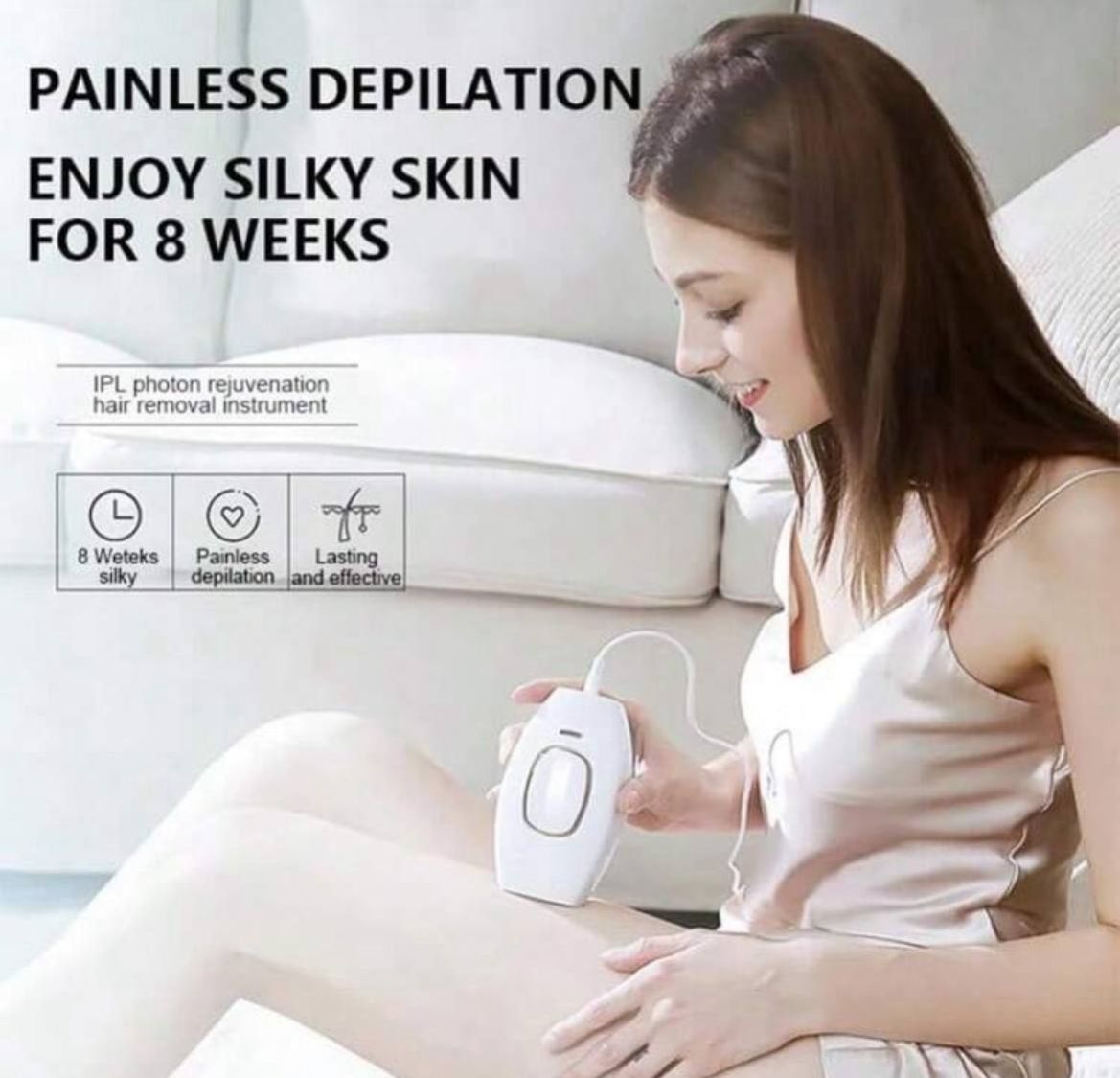 جهاز إزالة الشعر بالليزر المحمول للنساء: جهاز إزالة الشعر بالليزر ديود للعناية الشخصية في المنزل، مجموعة إزالة الشعر بالليزر اليدوية الناعمة كالحرير (أسود ، ابيض )