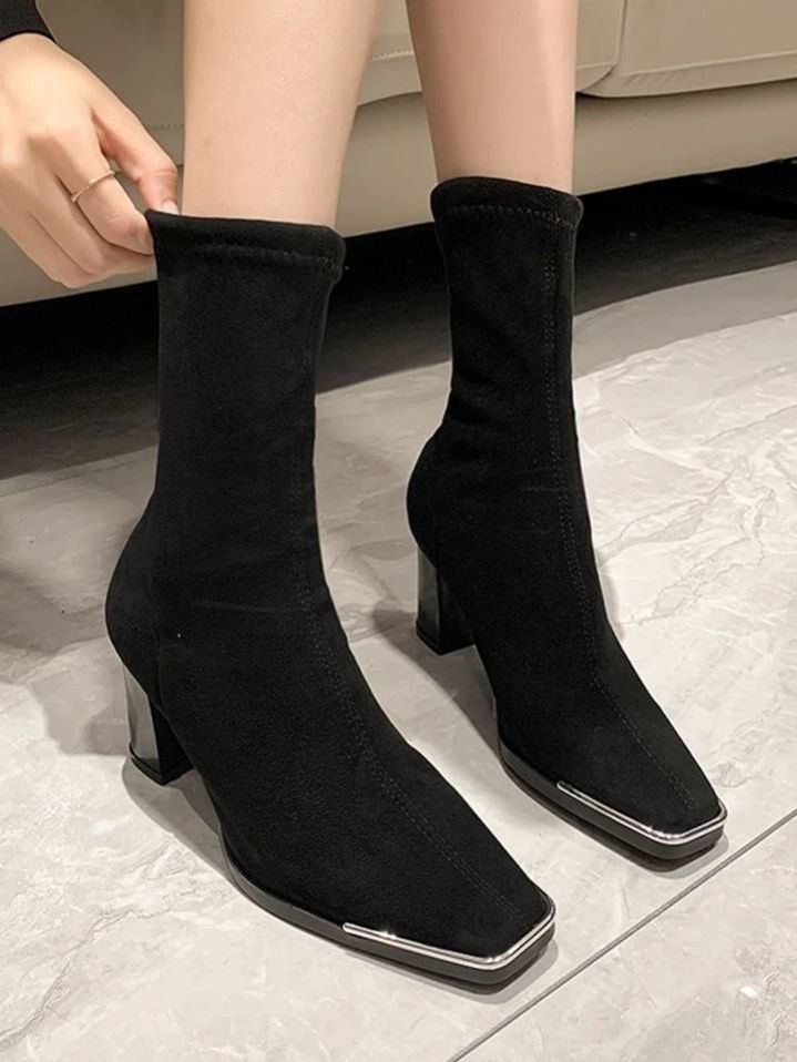 0 Review Of Product حذاء جورب بمقدمة مربعة وكعب سميك صناعي