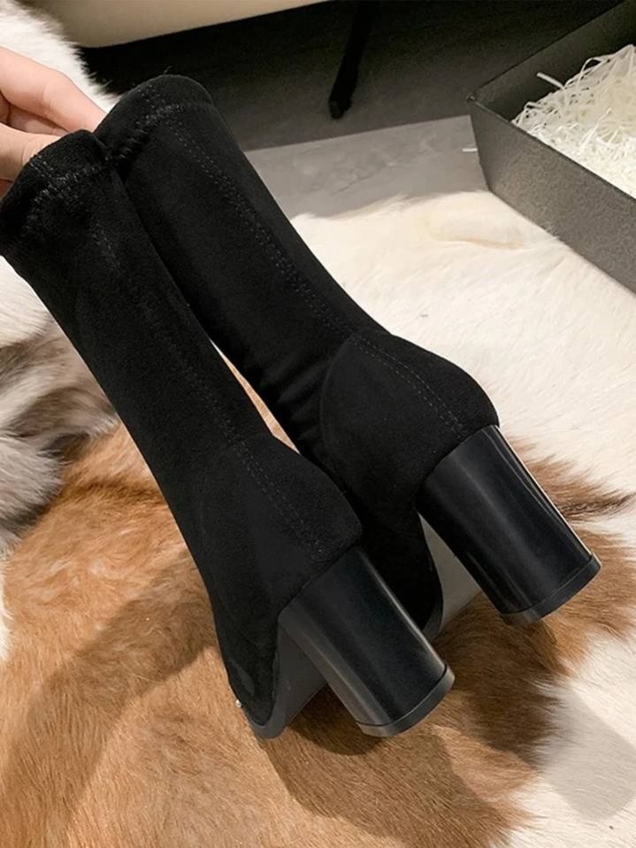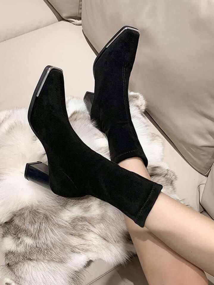 حذاء جورب بمقدمة مربعة وكعب سميك صناعي