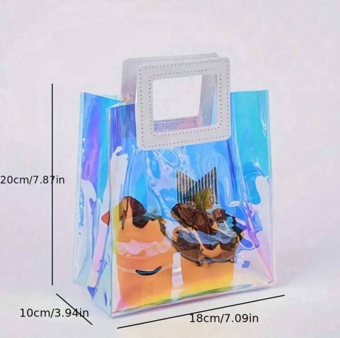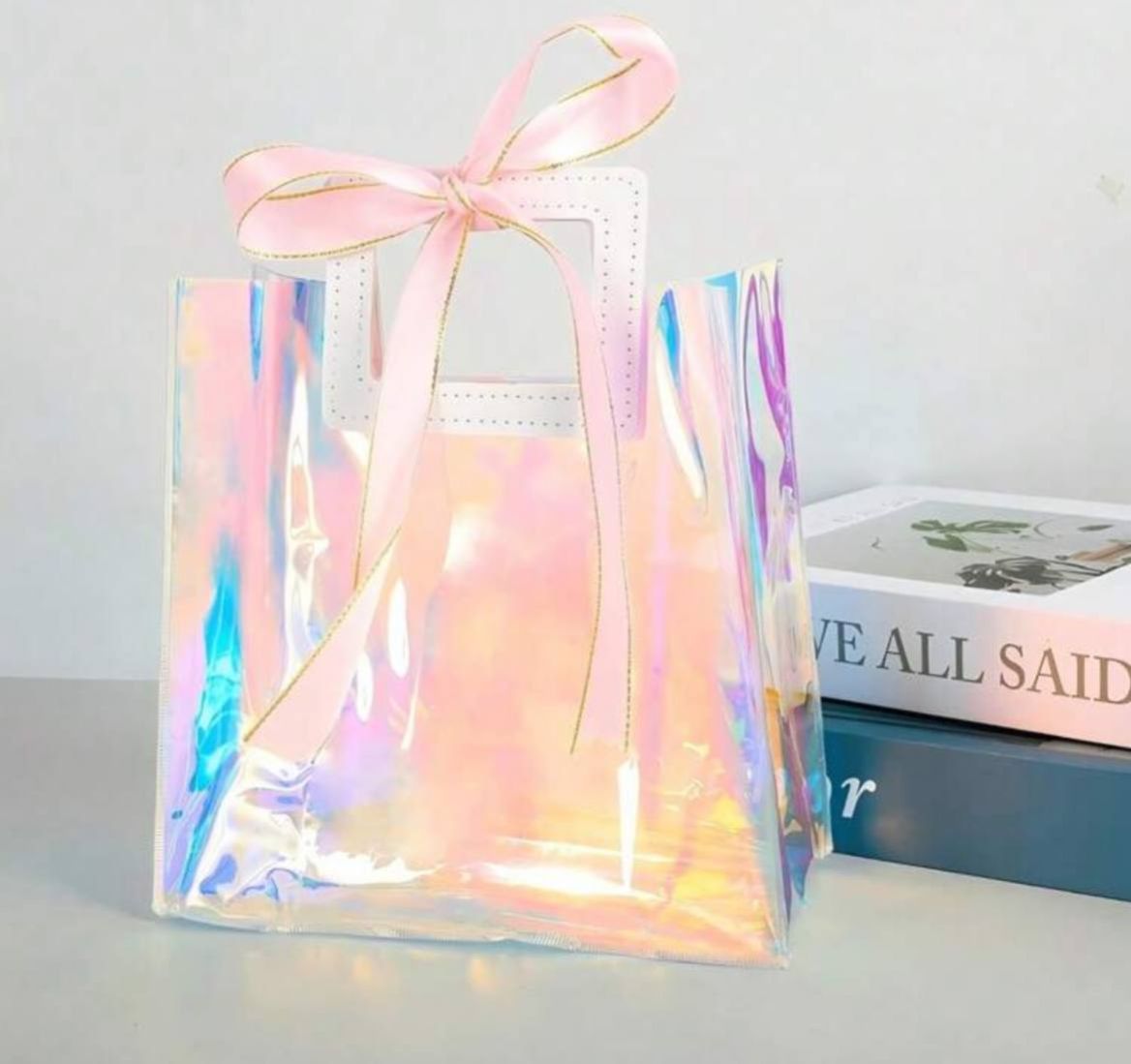 حقيبة هدايا شفافة معدنية نمط ، حقيبة يد من البي في سي لهدايا الأعياد والمناسبات والزفاف وأعياد الميلاد، قابلة لإعادة الاستخدام ومقاومة للماء، حقيبة تسوق، هدايا للأم في عيد الأم واليوم العالمي للأم، هدايا عيد الأم بأقل من 50 دولار