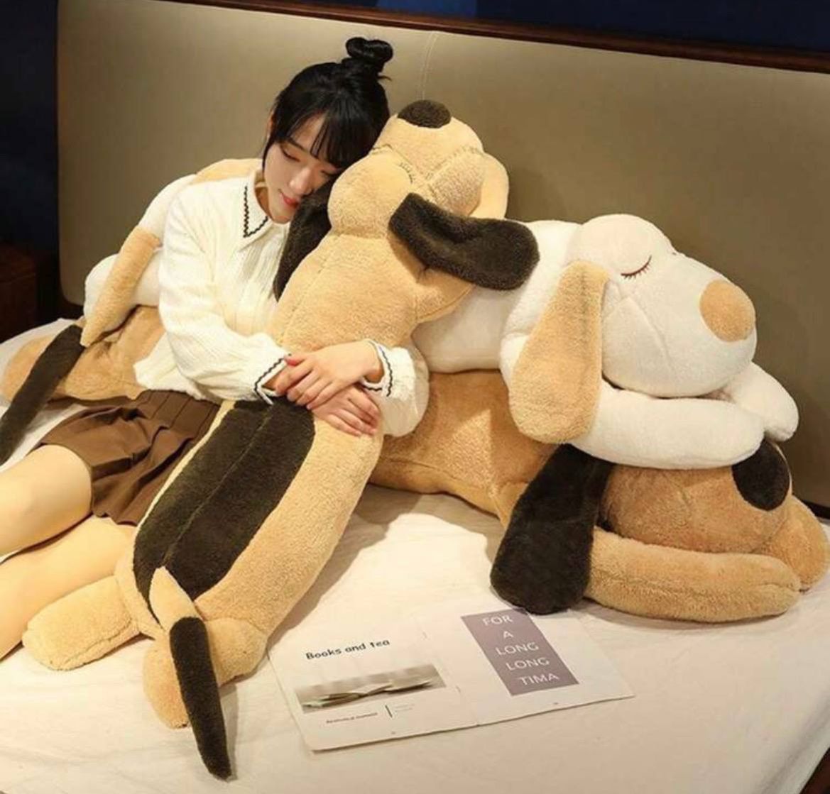 دمية كلب من القطيفة الناعمة والفاخرة بطول 70 سم/110 سم، هدية مثالية لعشاق الكلاب، ديكور رائع لغرفة الأطفال، هدية خاصة لأعياد الميلاد والأعياد والحفلات وعيد الشكر وعيد الميلاد وعيد الحب