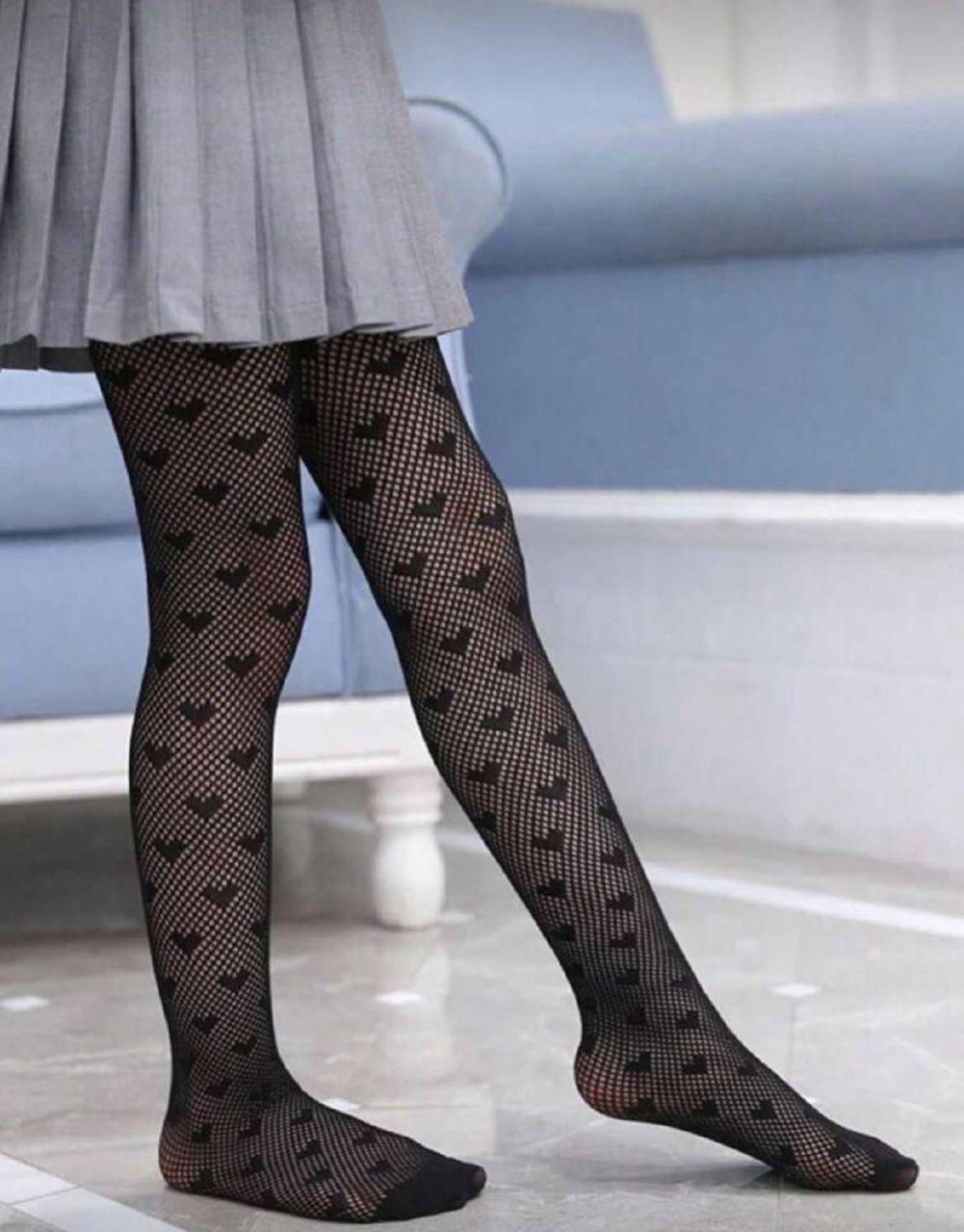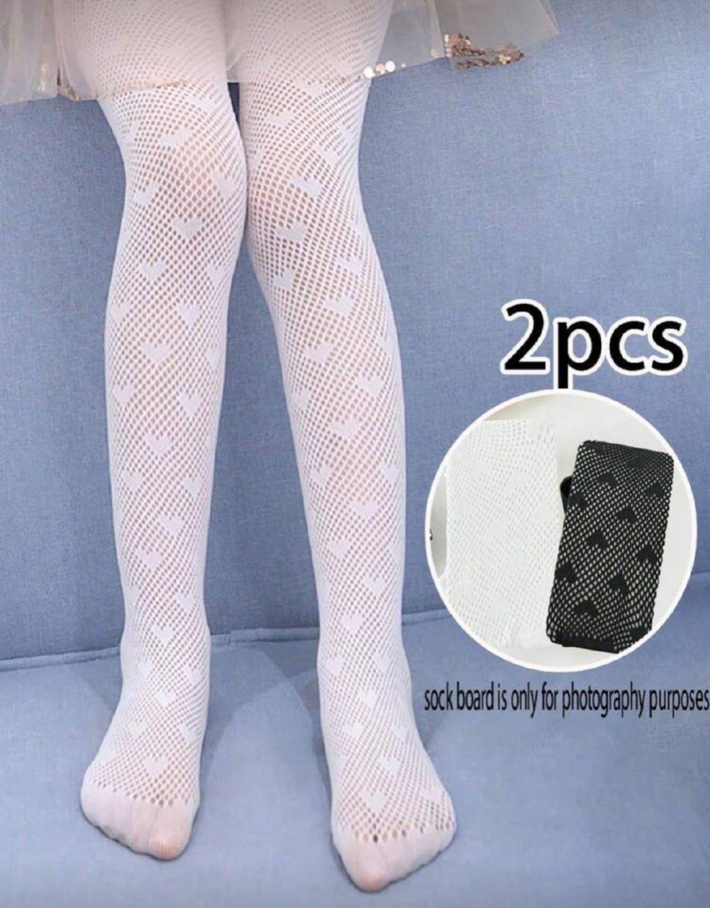 زوجان من جوارب الفتيات ذات نقشة القلب والشبكة، مناسبة للربيع/الصيف (القياس 20 TB)