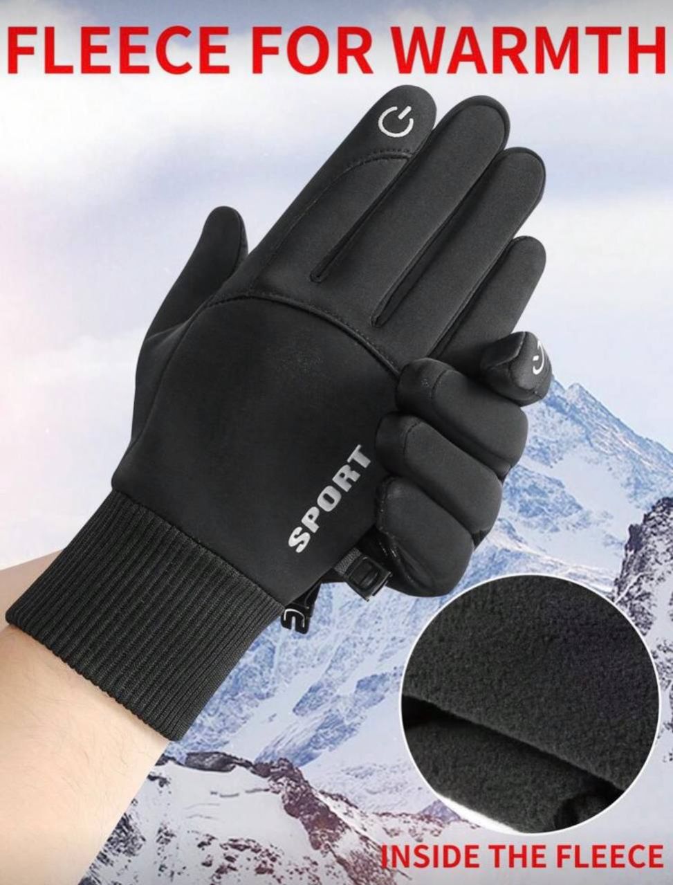 زوج من قفازات الرجال المبطنة بسمك للخريف والشتاء، تعمل بشاشات تعمل باللمس، مقاومة للرياح والماء، مناسبة للرياضات الخارجية مثل ركوب الدراجات والتزلج والقيادة، مناسبة لركوب الدراجات والدراجات النارية والتزلج، لون أسود، محافظ على دفء اليدين في الشتاء