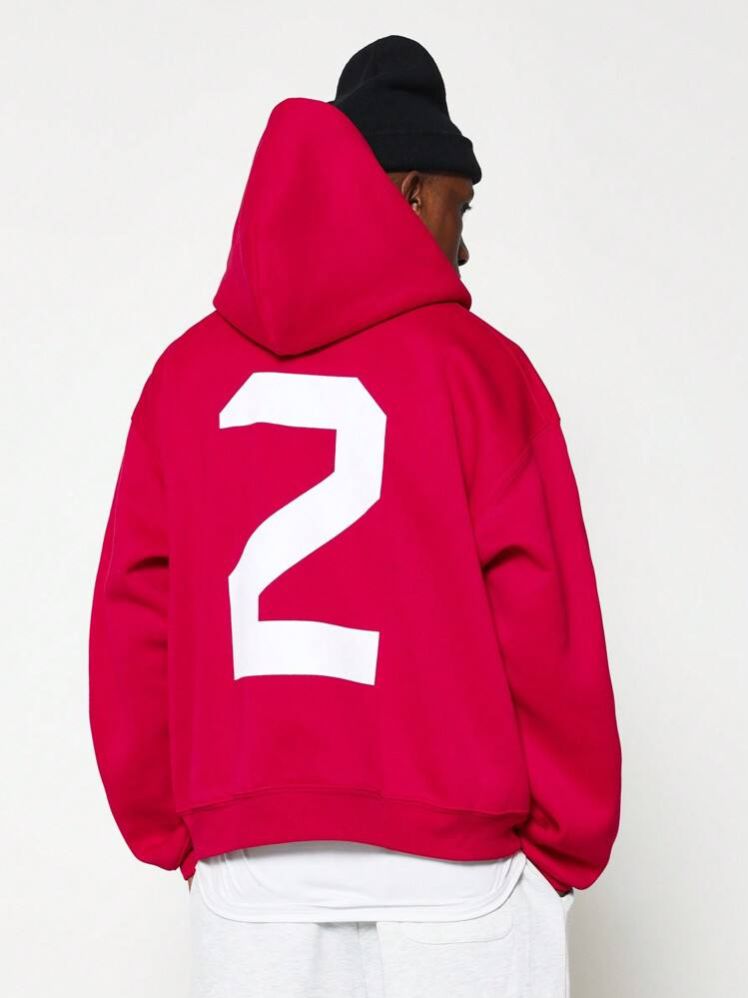 سترة رياضية SUMWON Streetwear Athleisure Number Two Statement Hoodie Varsity رقمية مطبوعة مريحة فضفاضة مريحة مبطنة بالصوف بغطاء للرأس سويت شيرت شتوي غير رسمي جمالي حضري