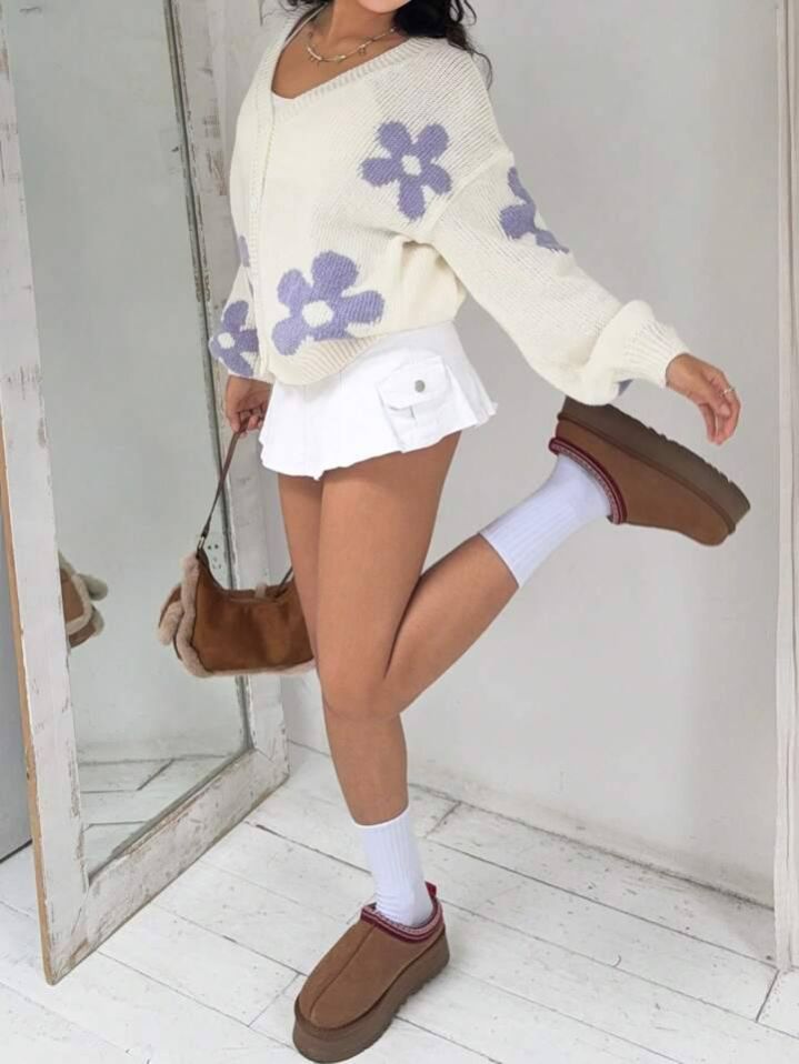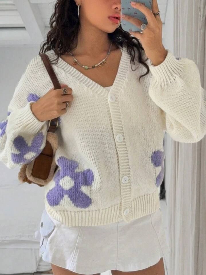 0 Review Of Product سترة كارديجان نسائية محبوكة بنقشة زهور