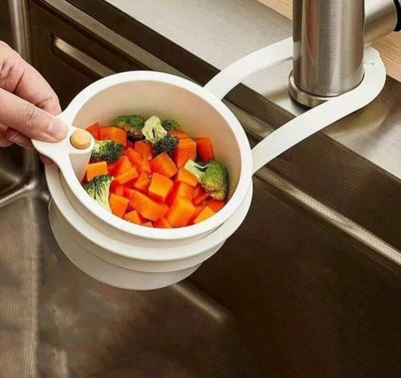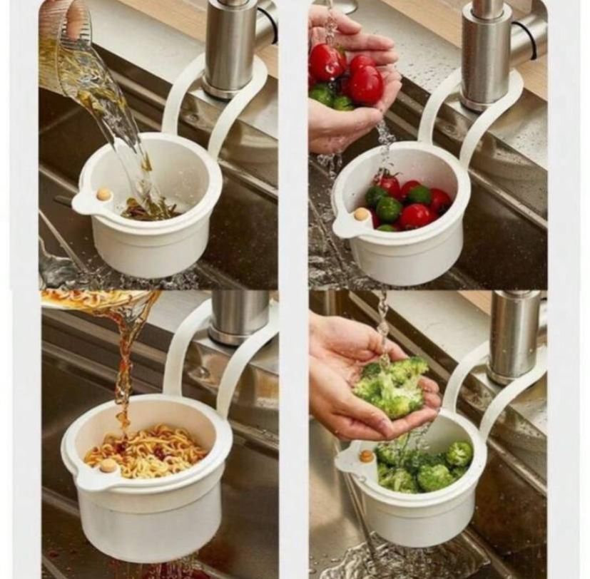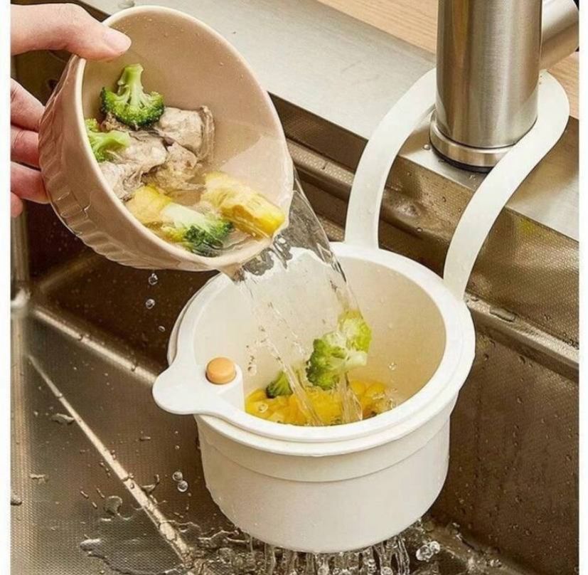 0 Review Of Product سلة مصفاة معلقة بتصميم إبداعي مع فتحات متعددة الوظائف وأداة تصريف سريعة لنفايات المطبخ وغطاء سفلي قابل للإزالة وسلة تخزين مطبخ وفاصل حوض كلاسيكي (لون عشوائي)