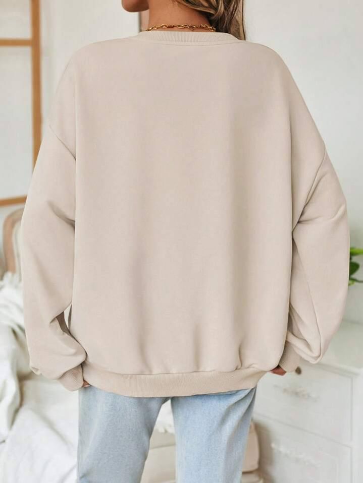 سويت شيرت نسائي من SHEIN LUNE، بتصميم بسيط وعصري، مزين بطبعة يسوع، بقصة فضفاضة وأكمام طويلة ورقبة دائرية، مناسب لفصلي الخريف والشتاء.